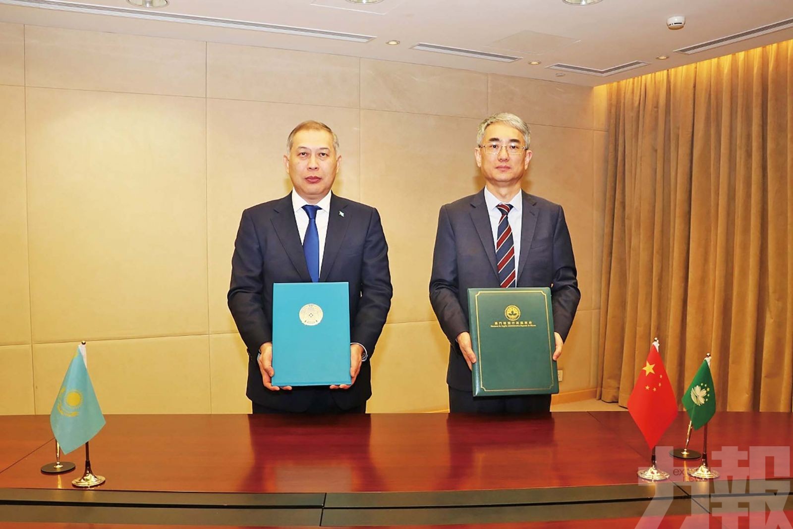 中華人民共和國澳門特別行政區政府與哈薩克斯坦共和國政府互免簽證協定》的簽署儀式於4月9日在澳門特區舉行,行政法務司司長張永春及哈薩克斯坦駐華大使沙赫拉特•努雷舍夫(Mr. Shakhrat Nuryshev)分別代表雙方簽署協定。