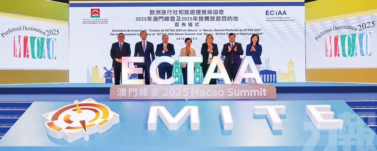 「歐洲旅行社和旅遊運營商協會2025年澳門峰會」及「葡萄牙旅行社協會2025年會」,此兩大盛會將於明年在澳門舉行,助力澳門持續開拓歐洲市場,擴大國際客源,促進旅遊經濟及多元化發展。