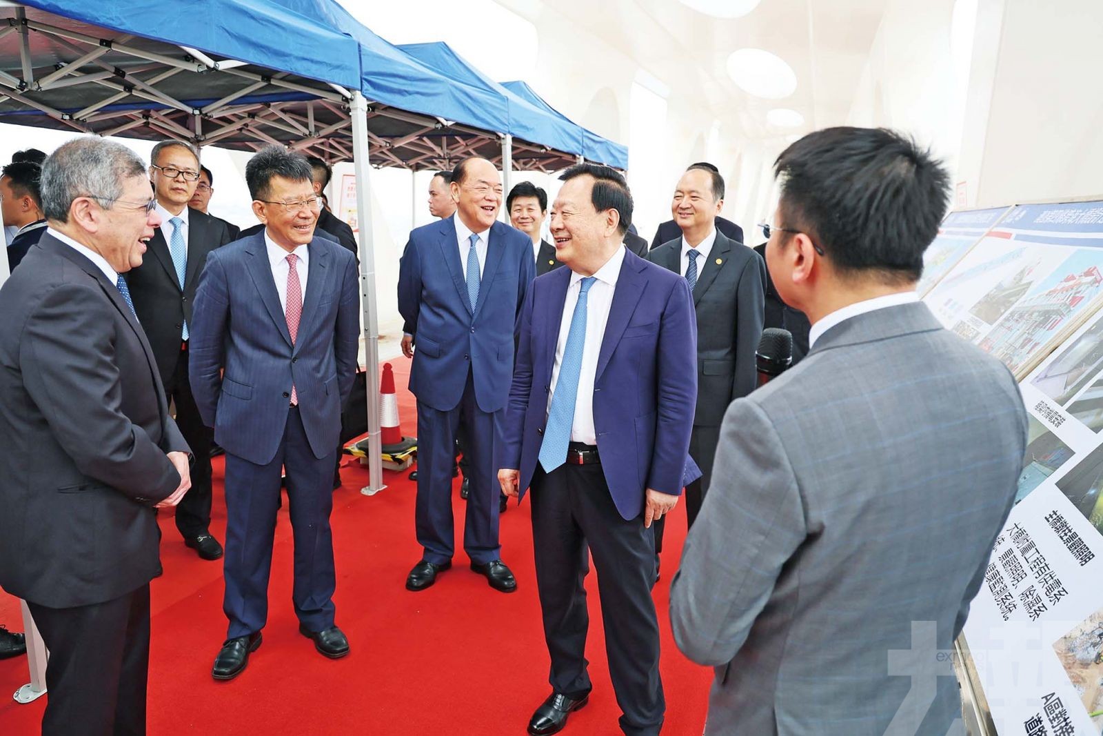在行政長官賀一誠等陪同下,夏寶龍主任考察澳門大橋建設工地。 (新聞局圖片)