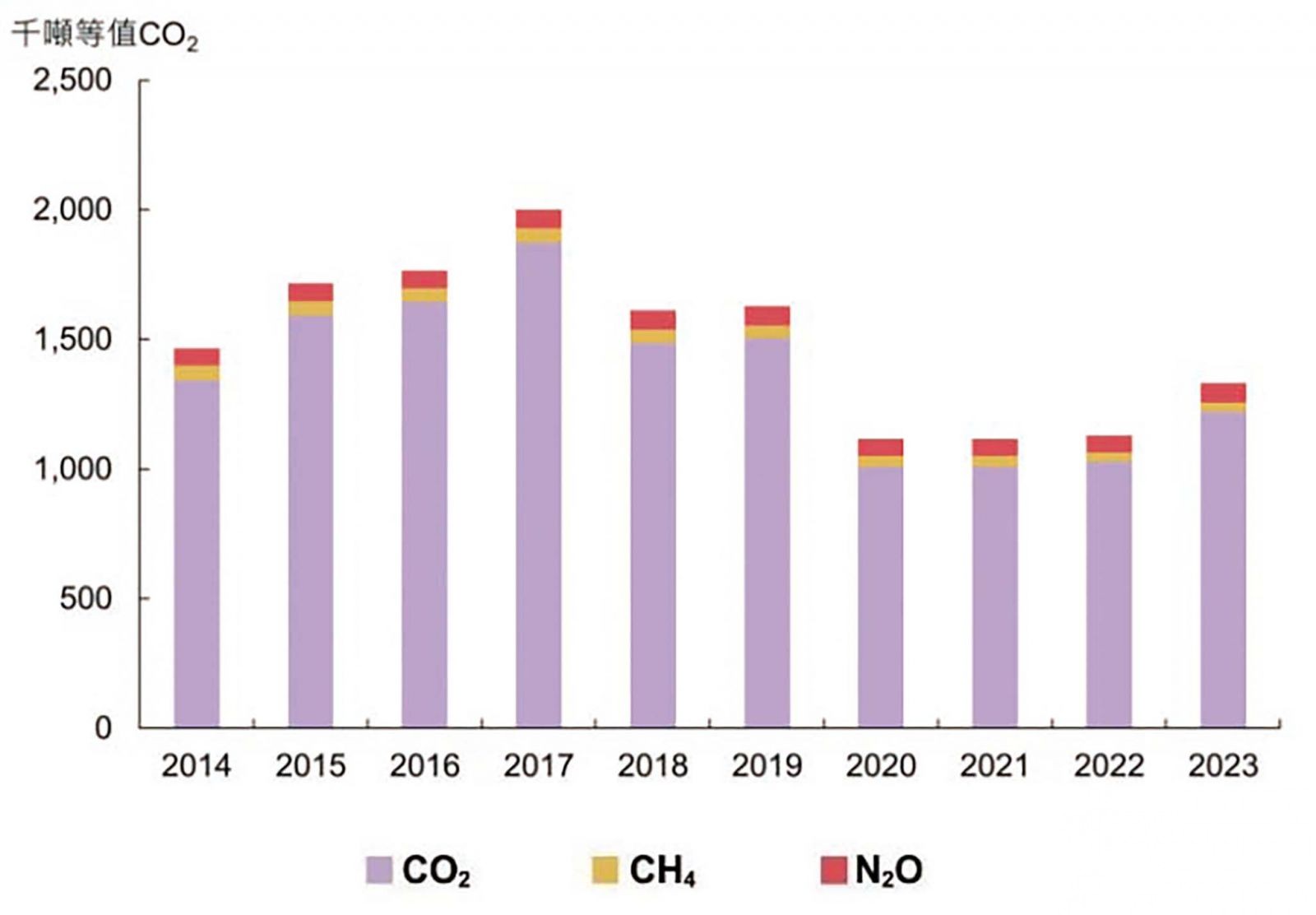 2023年本地溫室氣體估算排放量較2022年上升近兩成,主要受交通運輸、廢物焚化、本地發電等排放增加帶動,其中二氧化碳佔九成。