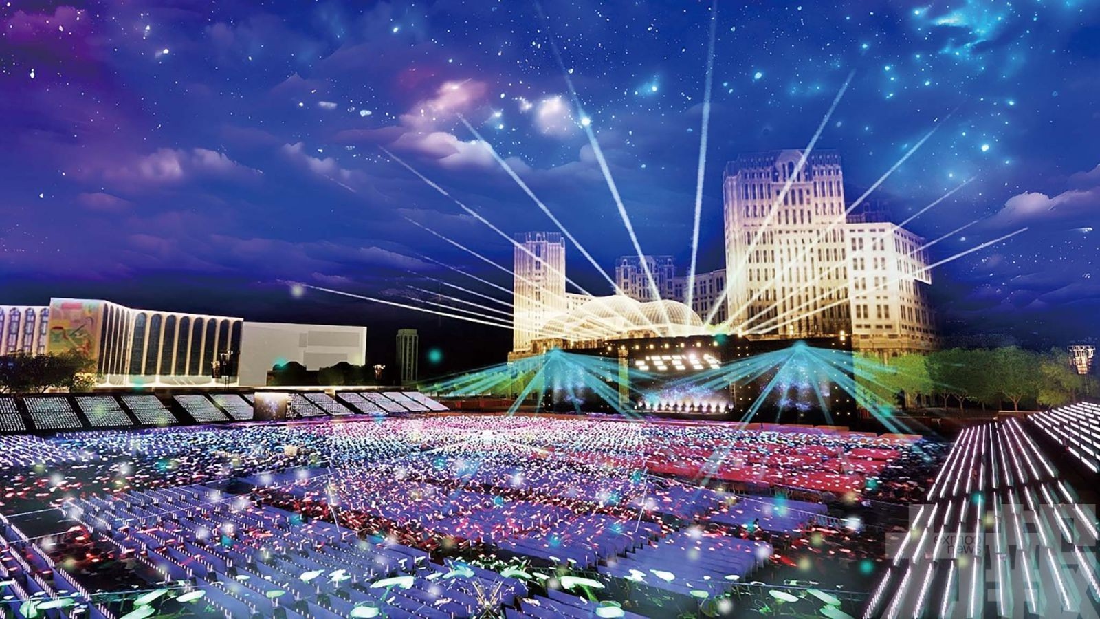特區政府選址路氹一片面積達9.4萬平方米的國有土地,臨時用作「澳門戶外表演區 」,並設有供舉辦大型演出活動的基本設施及配套,預計可容納約五萬名觀眾。 (設計圖片)