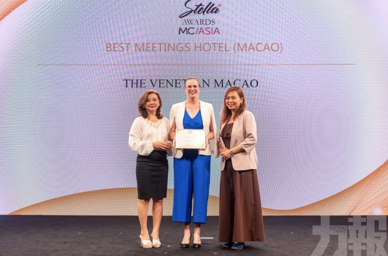 金沙中國有限公司銷售業務副總裁Stephanie Tanpure代表澳門威尼斯人於M&C Asia Stella Awards 2024接受「最佳會議酒店(澳門)」獎項。
