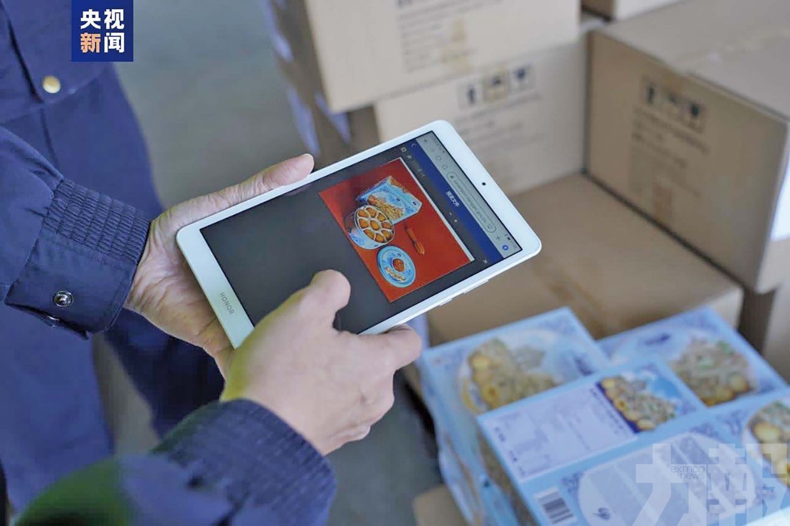 現場海關人員通過查驗設備掃描二維碼,可一鍵查看澳門製造食品全程溯源信息,監管作業效率大大提升。(央視新聞圖片)