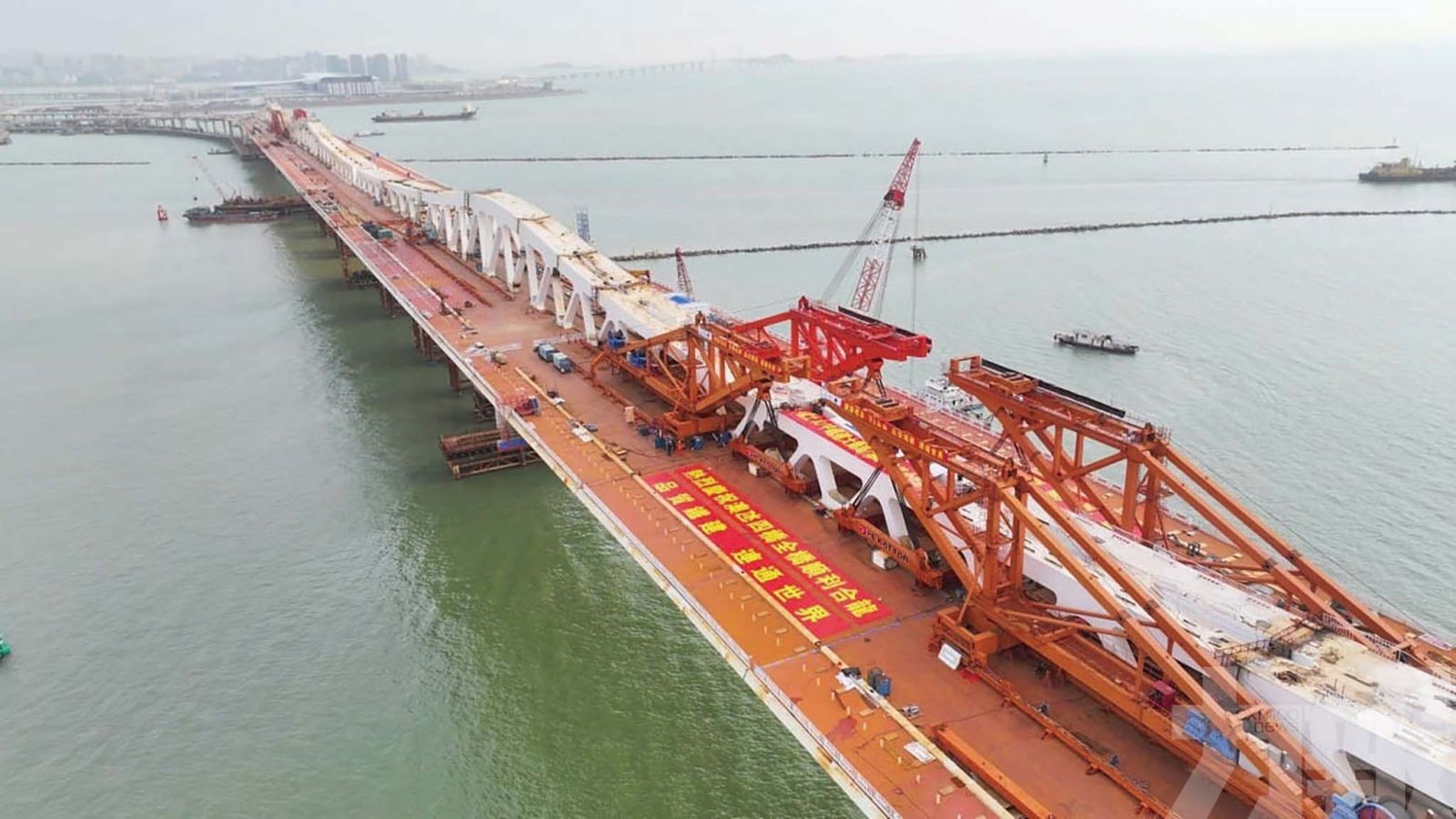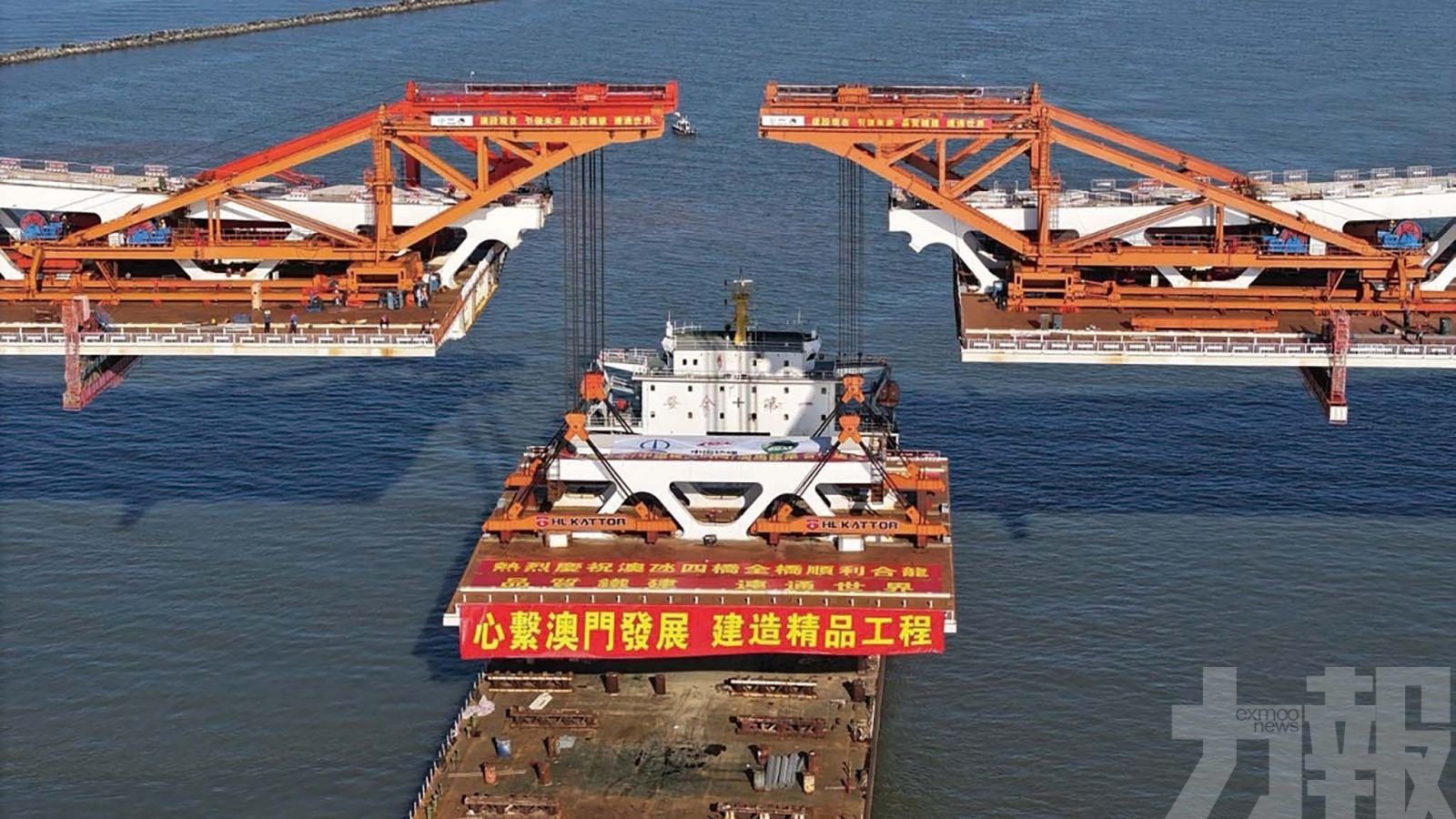 澳氹第四條跨海大橋實現全橋合龍。(公共建設局圖片)