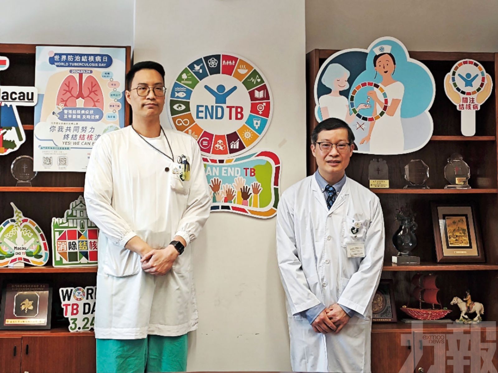 結核病防治中心藥劑診療技術員陳冠穎和結核病防治中心代職務主管醫生陳洪濤呼籲結核病患者早發現早治療。(林嘉欣攝)