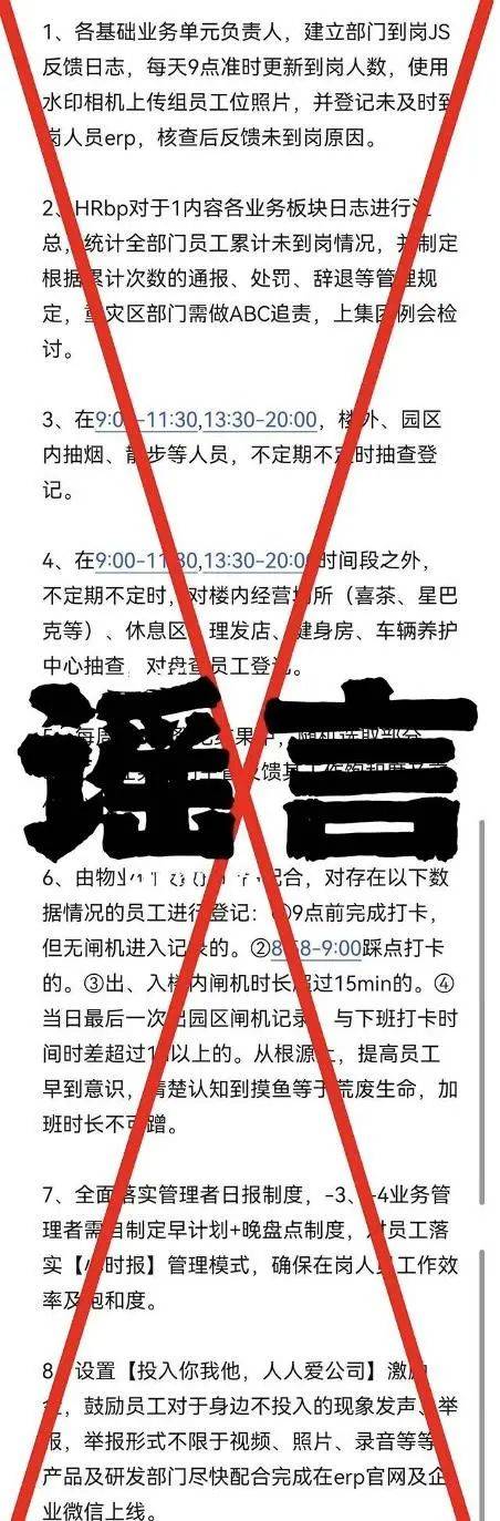 京东否认网络流传的8条考勤新规定 图源:受访者提供