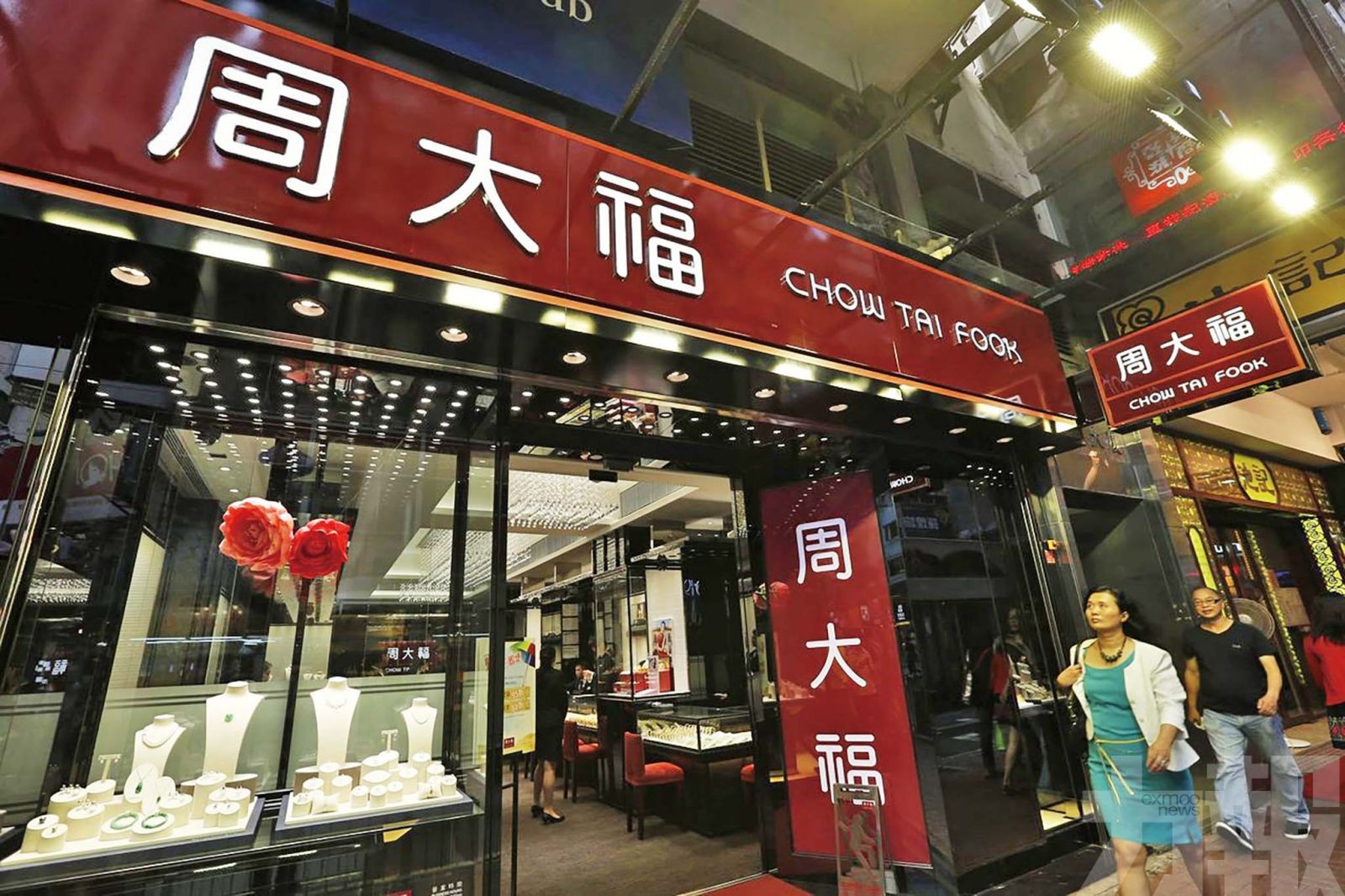 周大福首財季零售表現下滑,亦令其股價急跌至近年新低。 (網絡圖片)