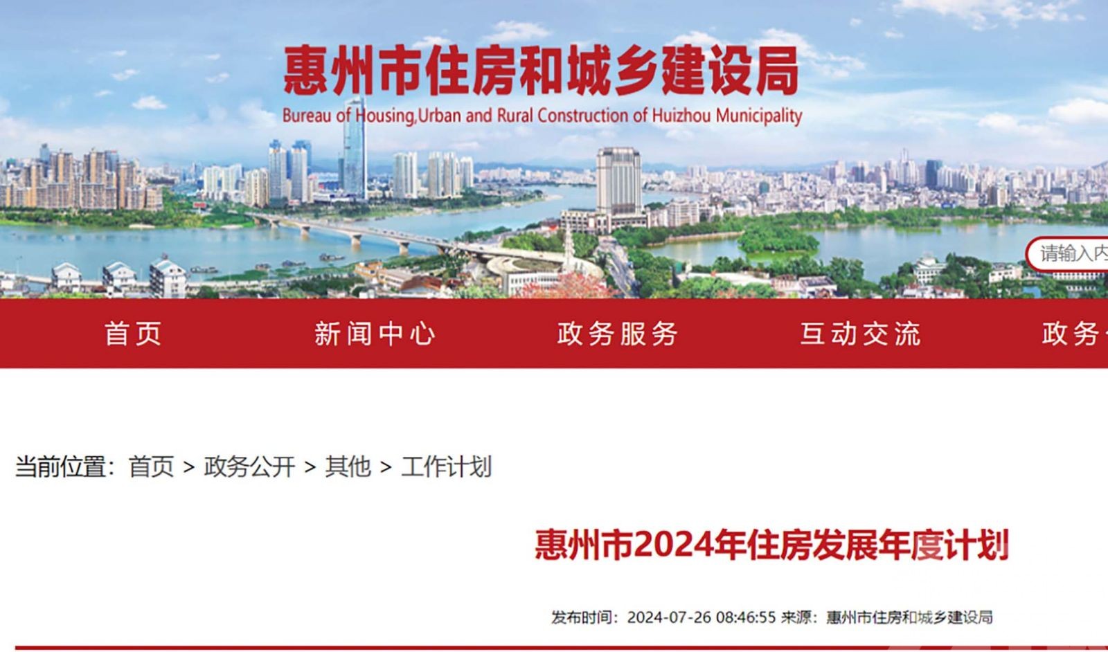 近日,惠州市住建局發布《惠州市2024年住房發展年度計劃》。