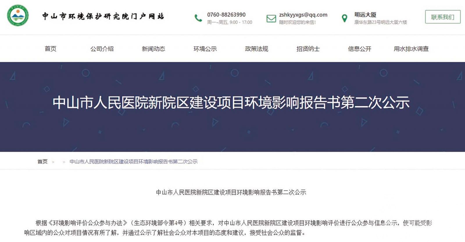 繼中山市發改局上個月底發布的中山市2024年重點項目計劃提到人民醫院新院區以來,不過短短10天的時間,人民醫院新院區項目又取得好消息。中山環科院發佈了《中山市人民醫院新院區建設項目環境影響報告書第二次公示》。