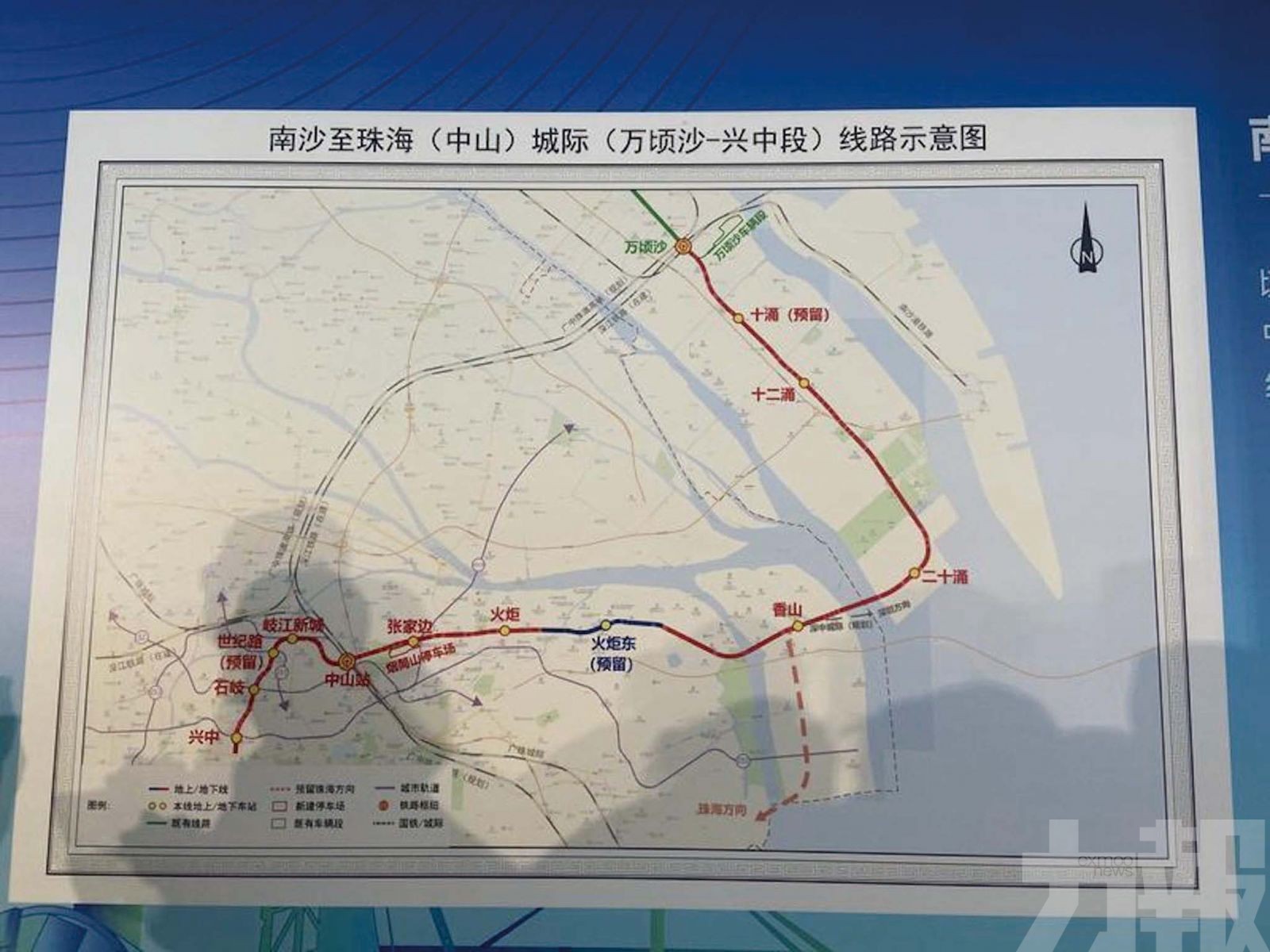 據了解,中珠城際為南沙至珠海(中山)城際鐵路的一部分,項目中山段推薦方案線路約17.9公里。在中山境內銜接翠亨新區、南朗街道,線路自位於翠亨新區馬鞍島的香山站引出,向南沿馬鞍島、南朗街道敷設,終點連接珠海境內的珠海北站。