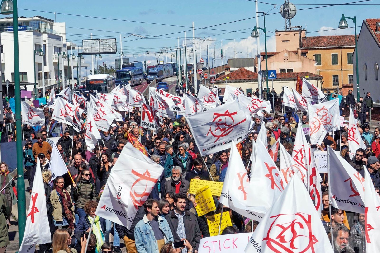 威尼斯居民反對開徵入城費,上街抗議。(美聯社圖片)