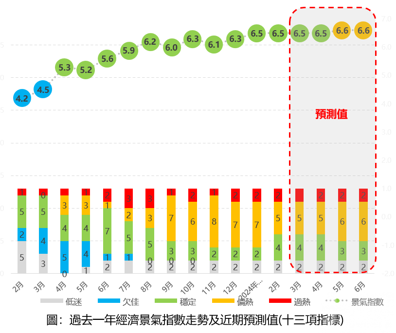 料第二季景氣在“穩定” 至“偏熱”間波動。