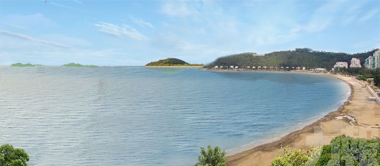 從黑沙海灘視覺看到的生態島建成後的模擬效果圖。(環保局圖片)