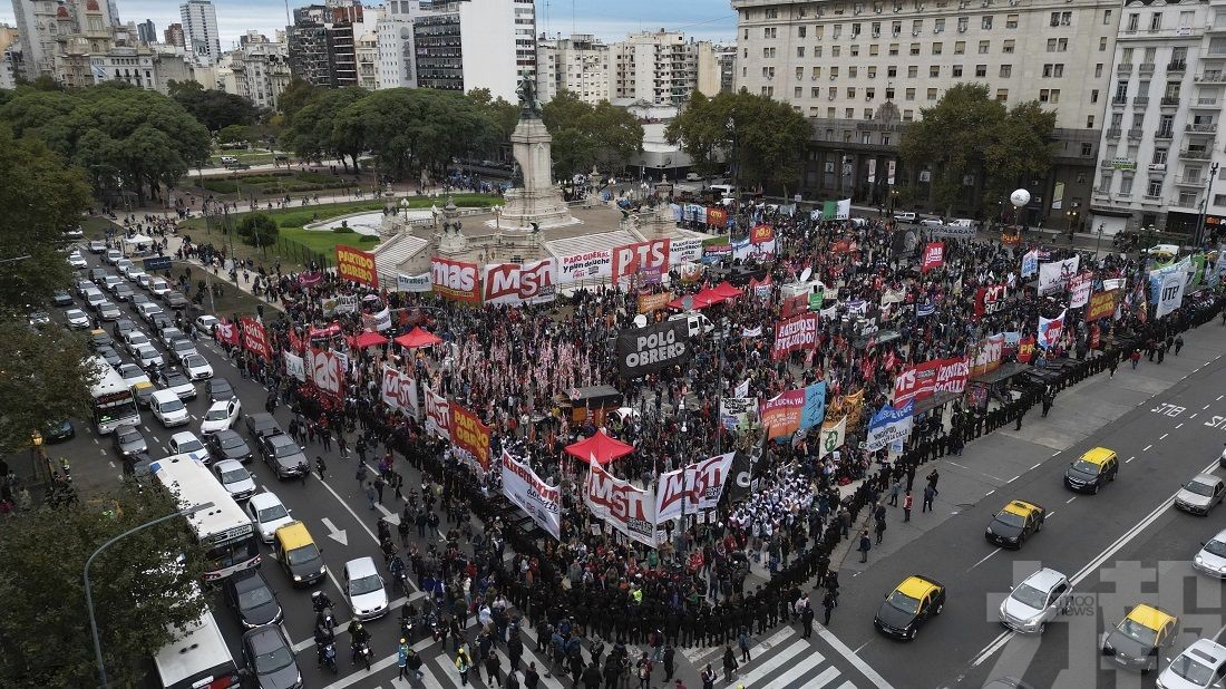 阿根廷民眾在勞動節發動大規模集會示威,抗議政府大砍公共預算縮減福利。(美聯社圖片)
