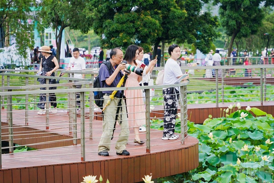 荷花節首日吸引大批市民遊客前來觀摩拍照。(深合區執委會圖片)