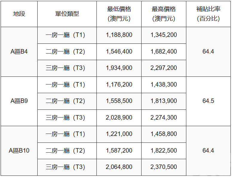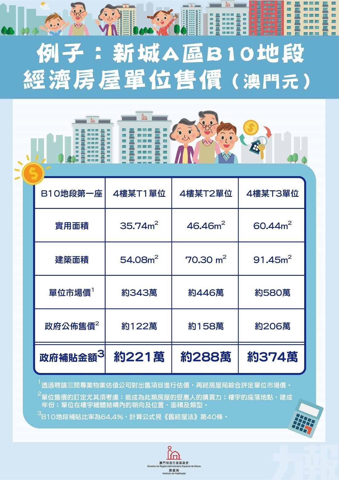 《特區政府公報》今(8)日刊登第57/2024號行政長官批示,公佈新城A區B4、B9及B10地段經濟房屋單位售價及補貼比率。