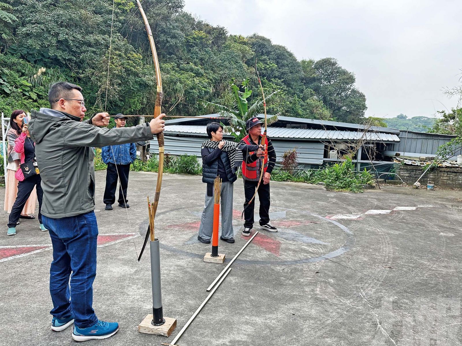 在射箭場以阿美族傳統的弓箭進行有趣的射箭體驗。