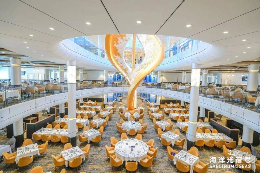 光谱号对主餐厅与帆船自助餐厅进行了合作升级。在收费餐厅方面,除了大董意境坊、泉·日式料理、奥利弗意大利餐厅、牛排烧烤餐厅等 [6]特色餐厅之外,还新增川谷荟、海涵火锅、铁板烧、咖语茶道等精选餐厅。