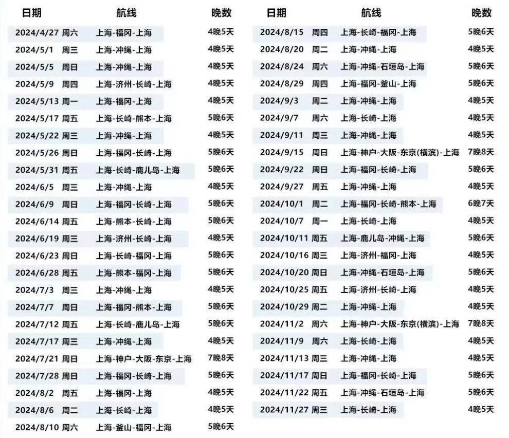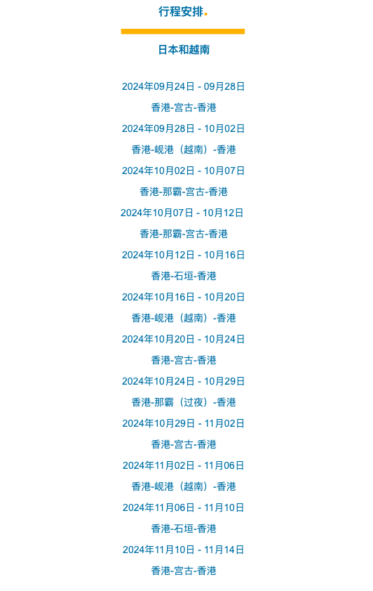 (航线信息可能有所更新,以邮轮公司公布为准)