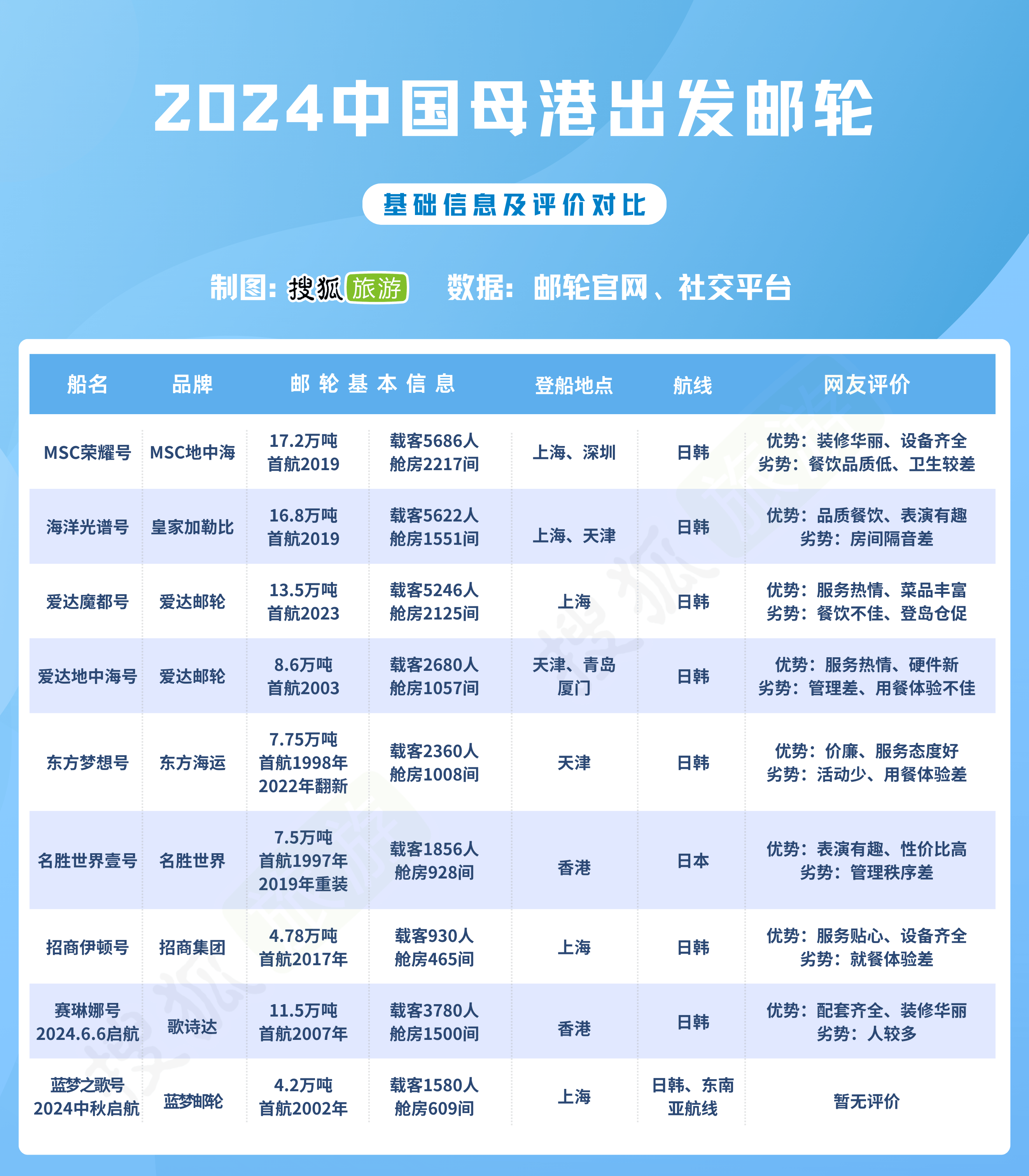 这一消息无疑为国内邮轮及入境游带来重大利好,那么国人出国有哪些游轮可选?超大豪华游轮能怎么玩?搜狐旅游「金狐奖」收集了7艘从中国母港出发以及1艘在今年即将正式出发的邮轮,旅游路线涉及日韩、东南亚、欧洲等,从7日游到月度游……收藏起来,选邮轮时再也不会找不着北啦~