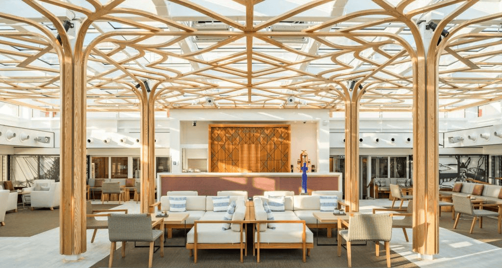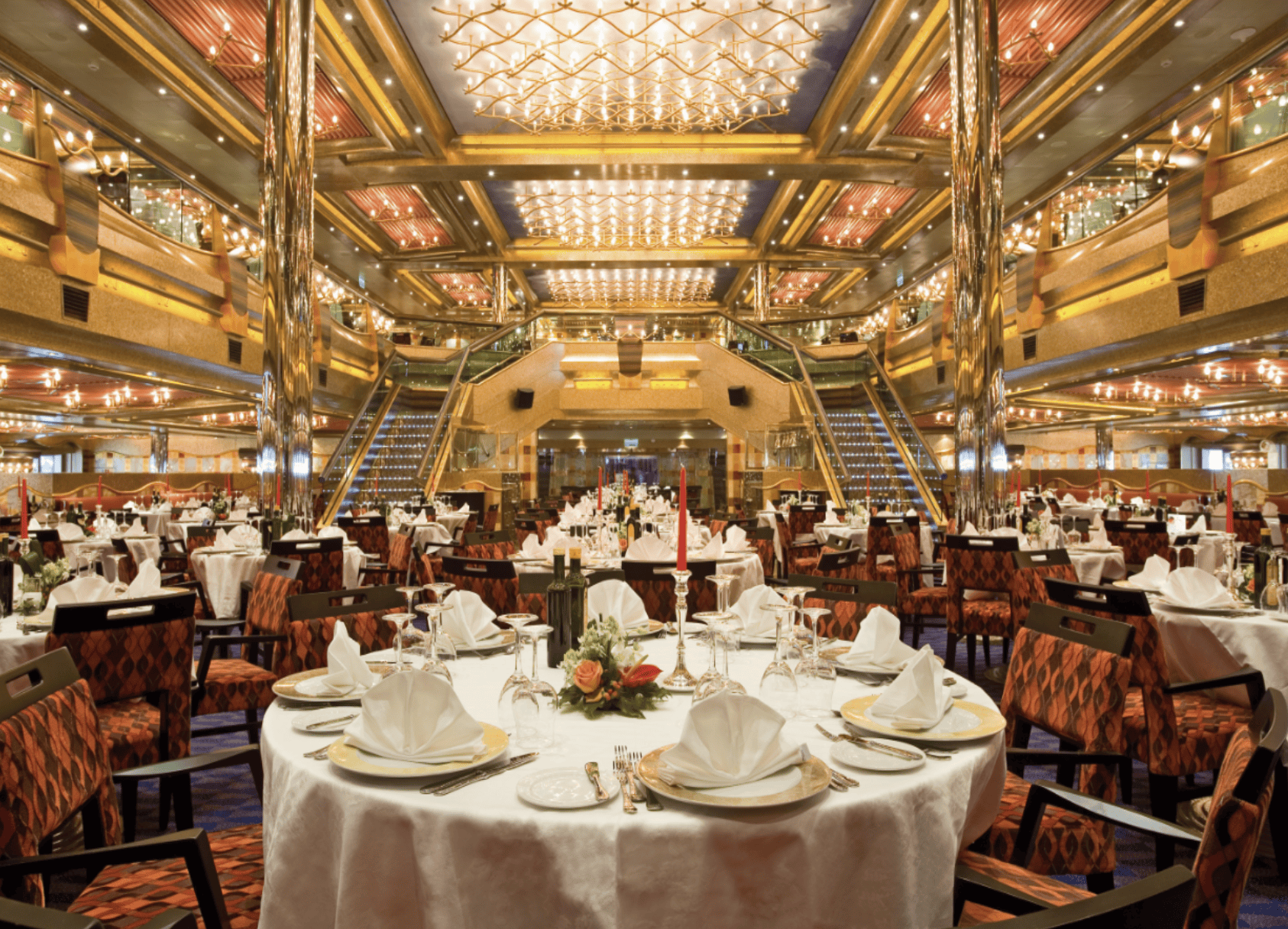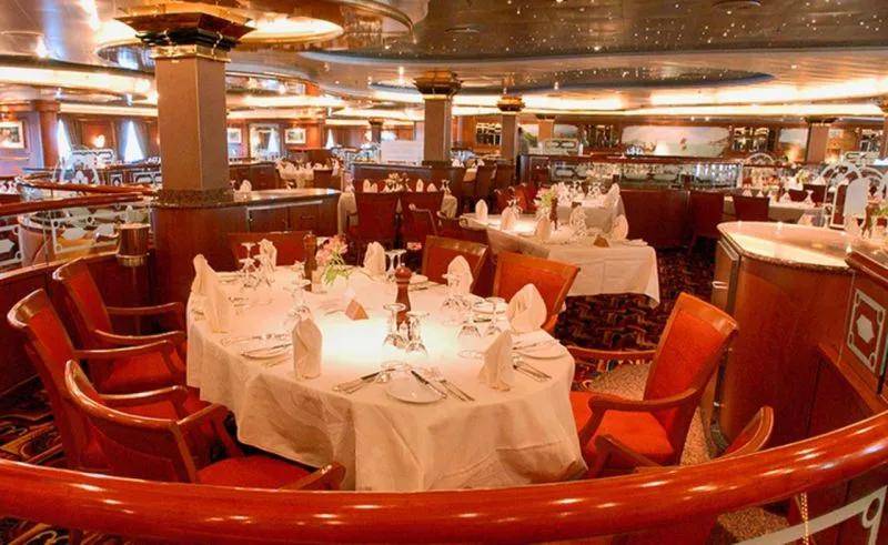 赛琳娜号,号称“海上众神殿”。内饰设计富丽辉宏,完美还原了古罗马盛景,从大堂到剧院每一处都是对古罗马文明,雕塑,建筑的礼赞。舒适精致的空间,星级酒店的服务,一应俱全的配套,迎着海上日出苏醒,伴着温柔海浪入眠,让每一间“海上梦乡”,变成您旅途中的家。主餐厅叫做瑟瑞斯,以谷类女神的名字命名,采用麦子金黄的色调,顶灯好似风吹麦浪,跨越两层甲板。舞厅叫做丘比特,四处用爱心点缀,连桌椅和沙发也是心形。