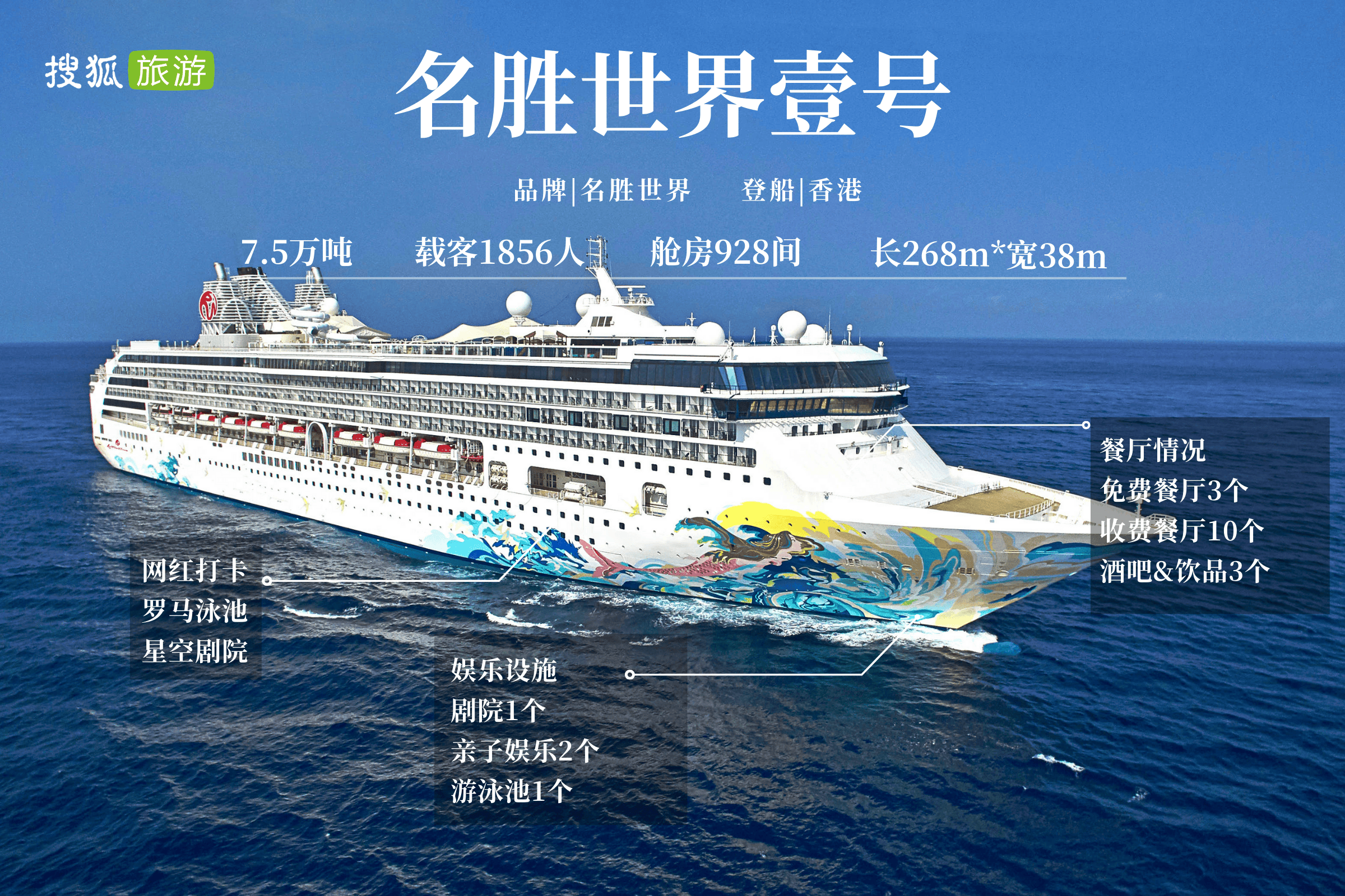名胜世界壹号作为“海上度假游轮”,包含餐饮、娱乐、购物、住宿等多个方面。船上18家餐厅和酒吧提供各种特色菜单,从亚洲本土风味到国际特色美食。游客既可在星座剧院观看表演,体验海上电影之夜,也可以参与主题娱乐活动和手工艺工作坊,投入VR探索馆的虚拟游戏,或体验罗马泳池,泳池内更设有凯撒滑梯和按摩池。接着在水疗中心放松,或在设备齐全的健身房锻炼身体,以及在船上精品店及免税店享受购物乐。
