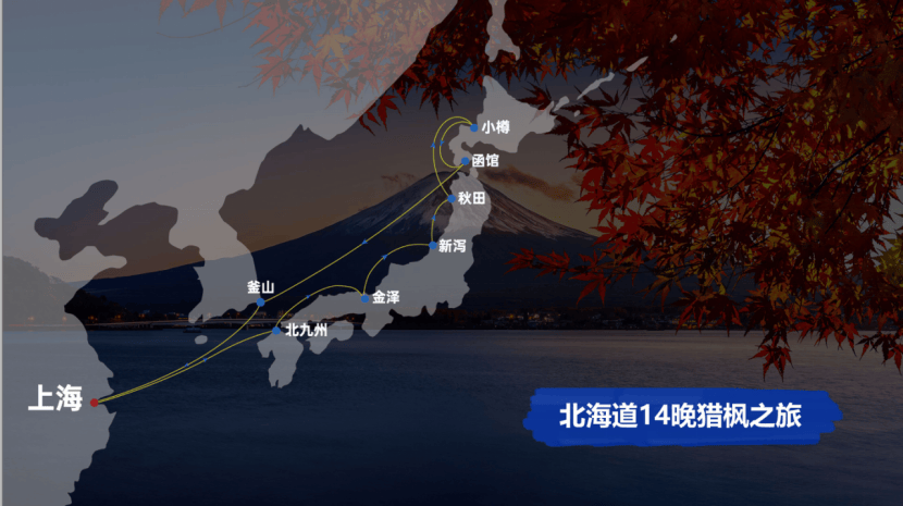 作为第四季度的另一主打长航线产品,“蓝梦之歌14晚北海道猎枫之旅”将于10月11日自上海母港出发,精选北九州、金泽、新泻、秋田、小樽、函馆、釜山等邮轮小众目的地,穿越浮世绘,一路和歌行,揭开北海道枫叶季静谧之美,让邮轮回归目的地初心。