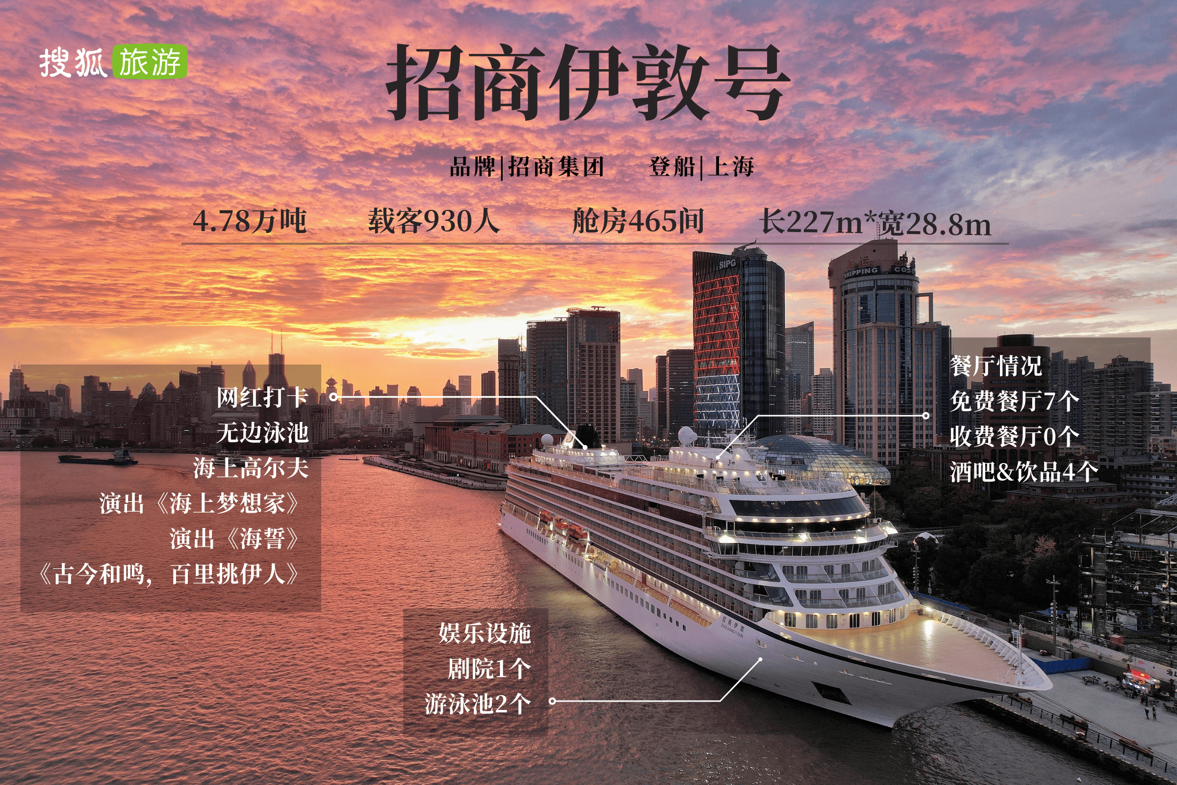 “招商伊敦号”是招商局集团以及维京游轮共同打造的第一艘中国籍高端邮轮,被誉为“5星雅奢欧洲设计海上移动酒店”。这艘北欧设计风格的游轮,全部房型均为阳台海景房。同时,船上设有7大餐厅,囊括中式菜、法国菜、意大利菜、日韩料理、北欧风味等环球美食在船上,游客可以欣赏超过400件艺术品,欣赏歌剧表演、听海上音乐会,看院线大片等。