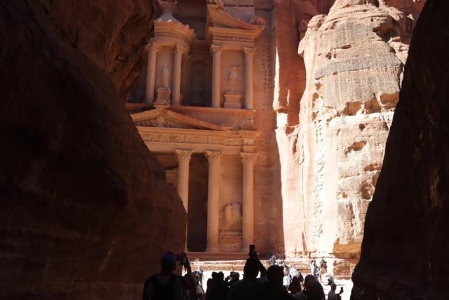 2023年1月20日,游客在约旦佩特拉古城游览。