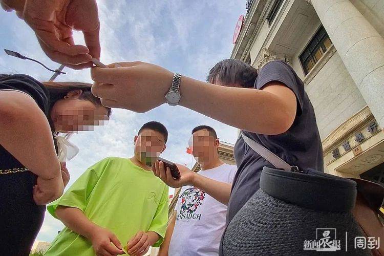 为了完成采访任务,记者当即扫码付了钱。该女子发了一张黄色粘纸圆卡片,贴到记者的左肩前T恤上,然后喊来另一名男子,带着大家沿九江路往西走。到东亚银行斜对面等红灯时,迎面来了一名瘦瘦的女孩,男子隔着马路,让记者一行跟该女孩走。