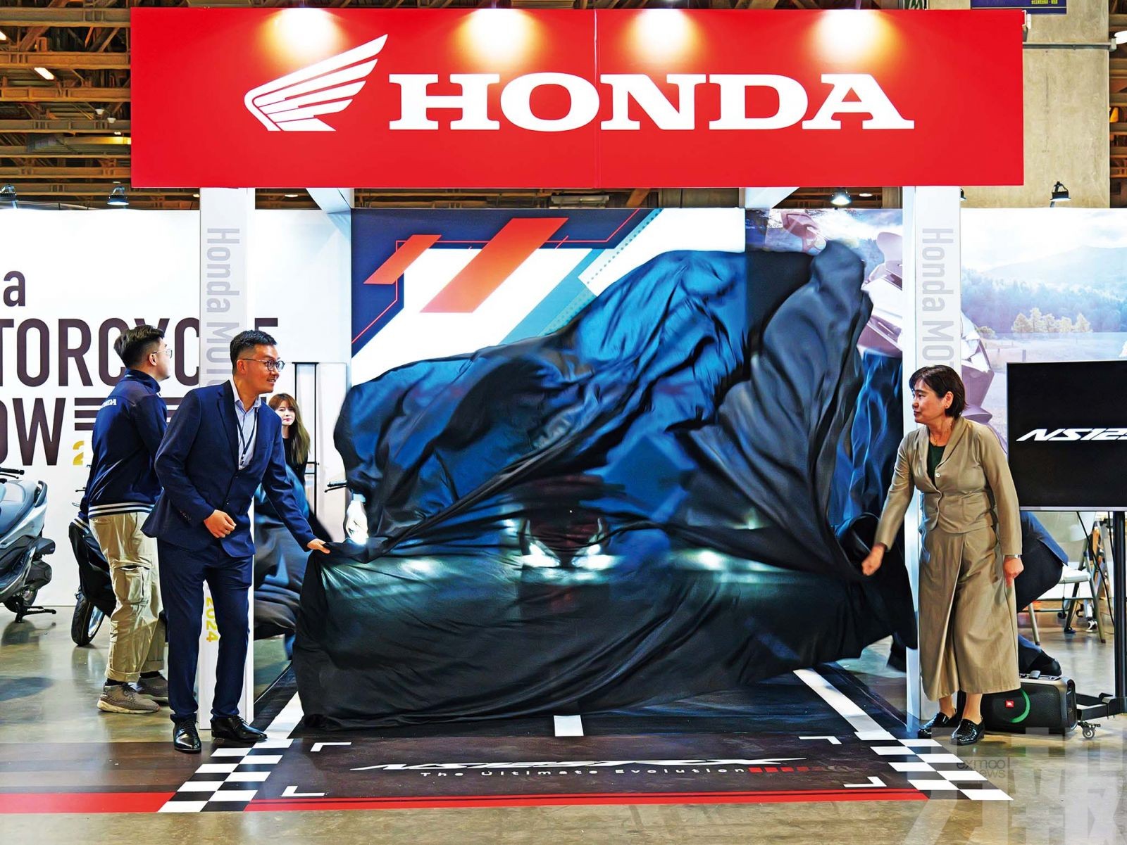 日前本田(Honda)電單車在「第八屆車天車地汽車博覽會」上發布全新運動綿羊NS125RX,現場氣氛熱鬧,主辦方邀請多位本地KOL,亦請來Macau Young Street Dance Association Co-workers表演街舞助興,並由本田技研工業(中國)有限公司總經理縫村早苗,聯同新順利汽車有限公司總經理麥家浩舉行新車揭幕儀式。一眾車迷除了睇新車,亦參與現場有獎問答遊戲獲取獎品。