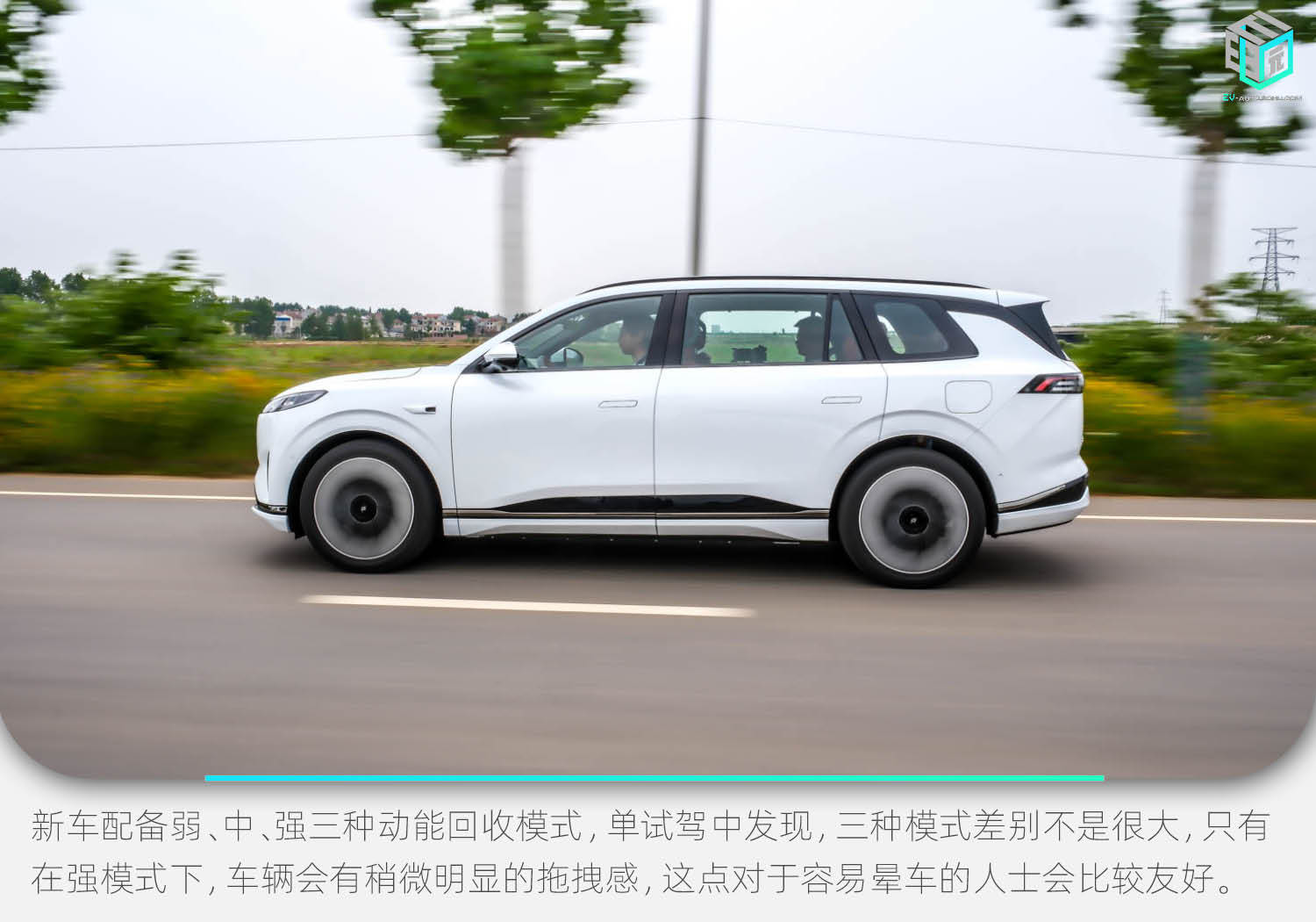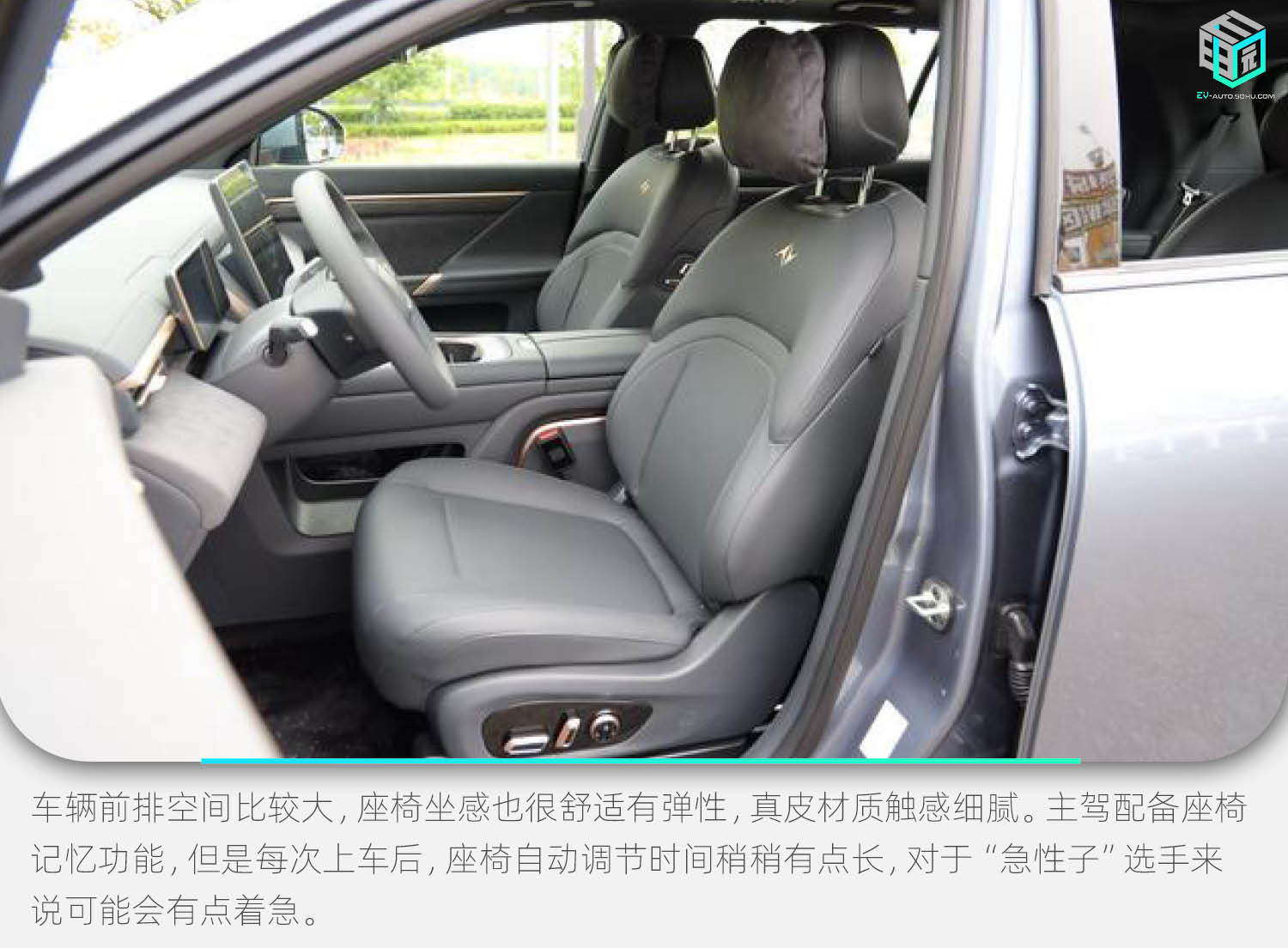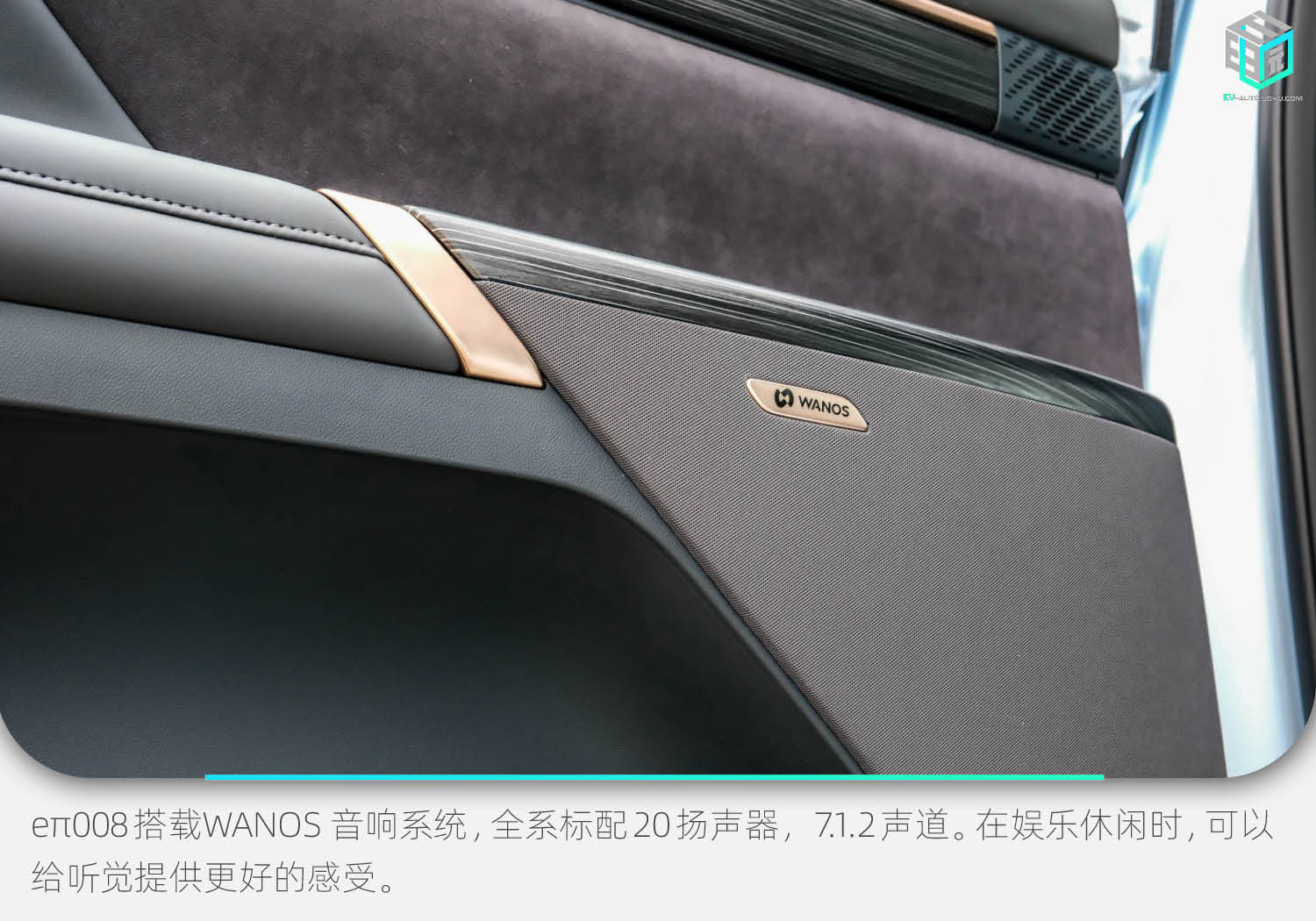 新车NVH表现也不错。eπ008采用双层夹胶玻璃和265/45 R21尺寸的马牌EC7静音轮胎,以90km/h的速度在石子路上行驶时,车内噪音大约为75.8dB。即使增程器介入工作,也不会感受到明显的车辆振动或者噪音。在高速路段行驶时,对风噪控制表现不错,几乎听不到风声。但车辆的胎噪稍稍有些明显,可能是由于轮胎宽度较大导致的。