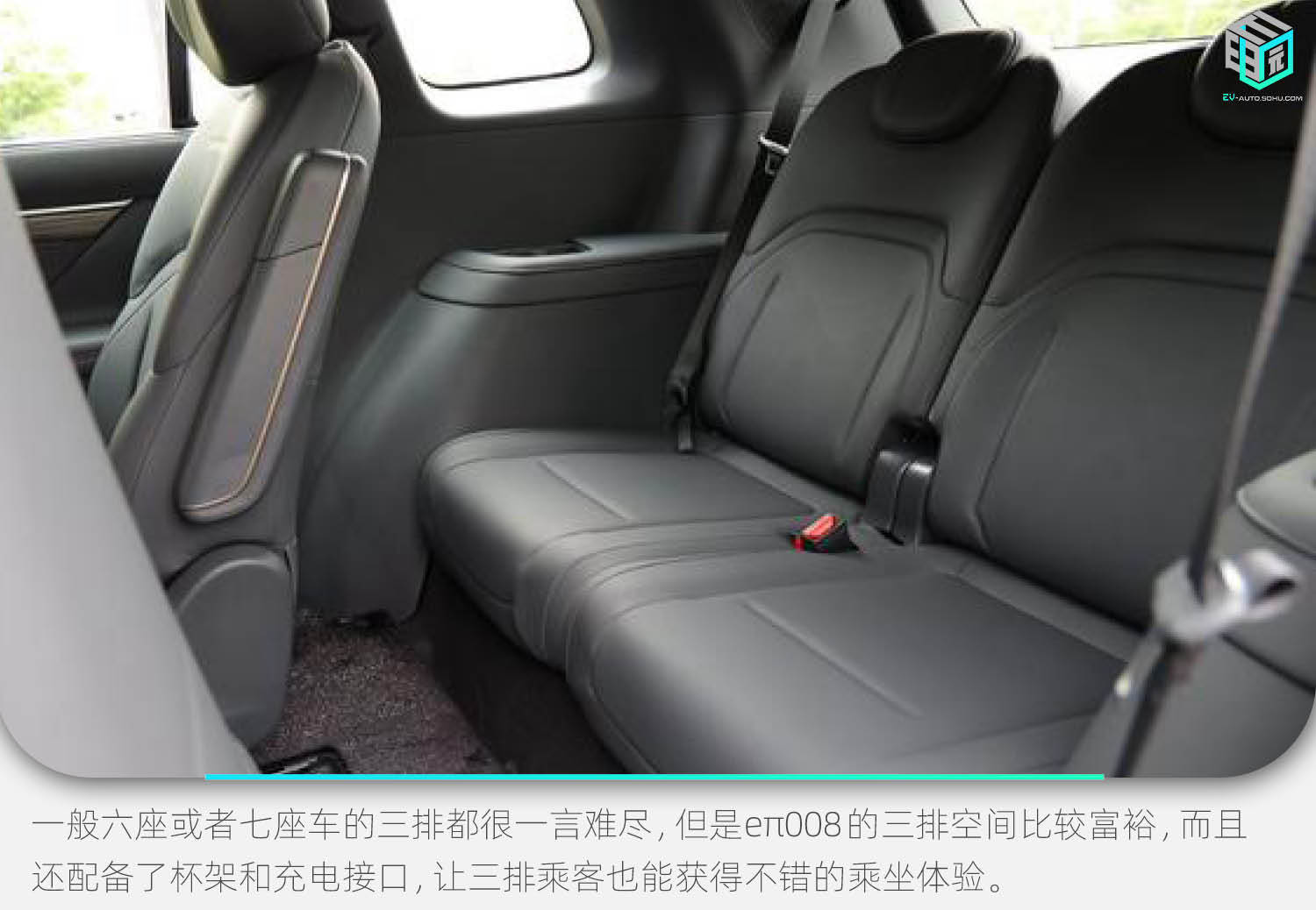eπ008的内饰延续eπ007的内饰设计风格,与外观一样属于极简风。虽然造型简单,但是质感在线。2+2+2的六座布局对于人数较多的大家庭来说,会更加合适,且能照顾到每个人乘坐的舒适性。