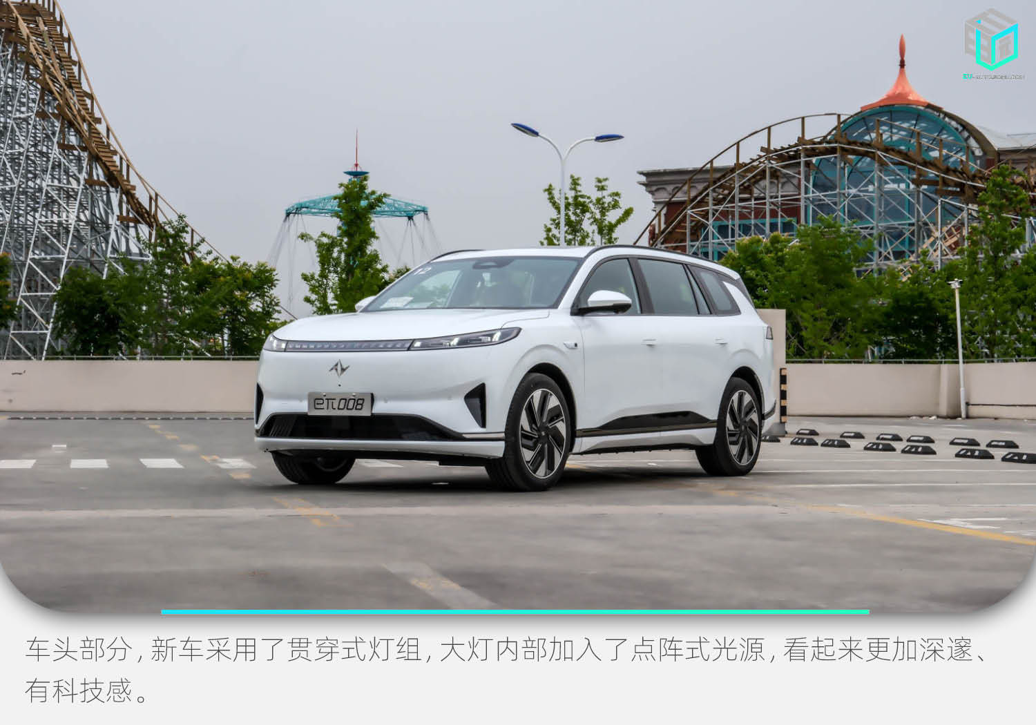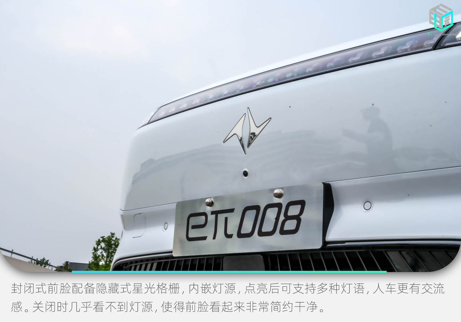 在看到eπ008后,总会有一种“一见如故”的熟悉感,不管是贯穿式大灯、封闭式前脸还是低风阻的外观设计,集尽当下新能源流行特征。有些人说新车造型太过中庸,倒不如说新品牌如此设计更不容易出错。不过,虽然新车整体设计很符合流行趋势,但它也有自己的亮点,之前我的同事对eπ008有过详细的静态解读,本期就来简单回顾一下新车的外观。