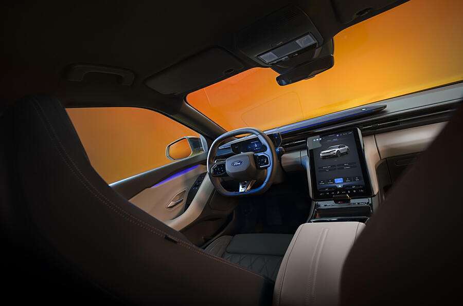 内饰方面,全新福特Capri延续了探险者EV的简约设计风格,大量采用直线条,同时又很有层次感。中控屏为14.6英寸,下方还有一个储物格。全新福特Capri采用一体式座椅,配置上搭载双温区空调、座椅加热、前排座椅按摩、后视镜加热/折叠、前排迎宾灯、无钥匙进入/启动等等。此外,该车支持选装驾驶辅助功能包,其中包括HUD抬头显示、主动泊车辅助以及全景影像等。车辆的后备厢容积为569L,放倒座椅后最大可扩展至1509L。
