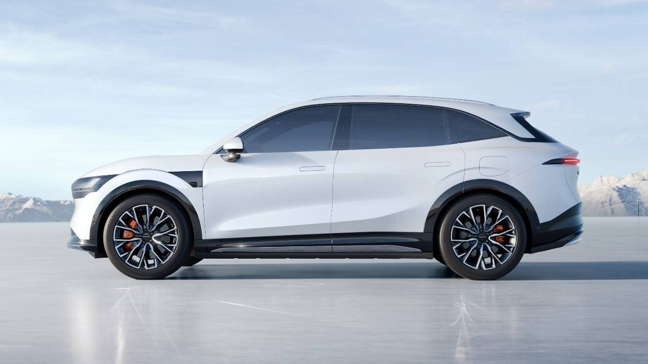 车辆侧面,极氪7X独有的弧光天际轮廓线,如晨曦破晓于天际,为城市轮廓镀上流金。0.618黄金车身比例,融合极具雕塑感的车身线条,营造出动感优雅的SUV姿态。悬浮车顶设计,让A柱与车身的连接点完美地被包裹在引擎盖内,车顶从车头贯穿延伸至车尾,毫无钣金拼缝,将豪华细节演绎到极致。