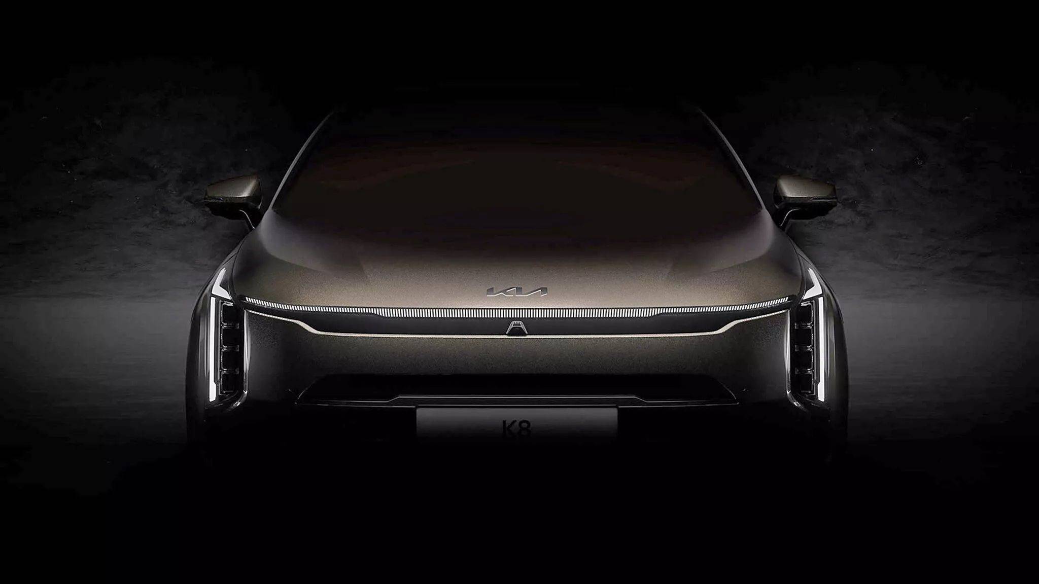 起亚K8定位于中大型车,该车在中国市场曾被称为凯尊。目前这一代K8车型于2021年正式发布,而此次公布的预告图中的新车,则是这一代K8车型的中期改款。从预告图来看,新车前脸设计变化明显,不再采用大嘴式的前格栅,而是采用了起亚EV车型更具科技风格的设计。前大灯组采用纵向排列,看上去更加犀利,底部保险杠区域也采用了新的造型。