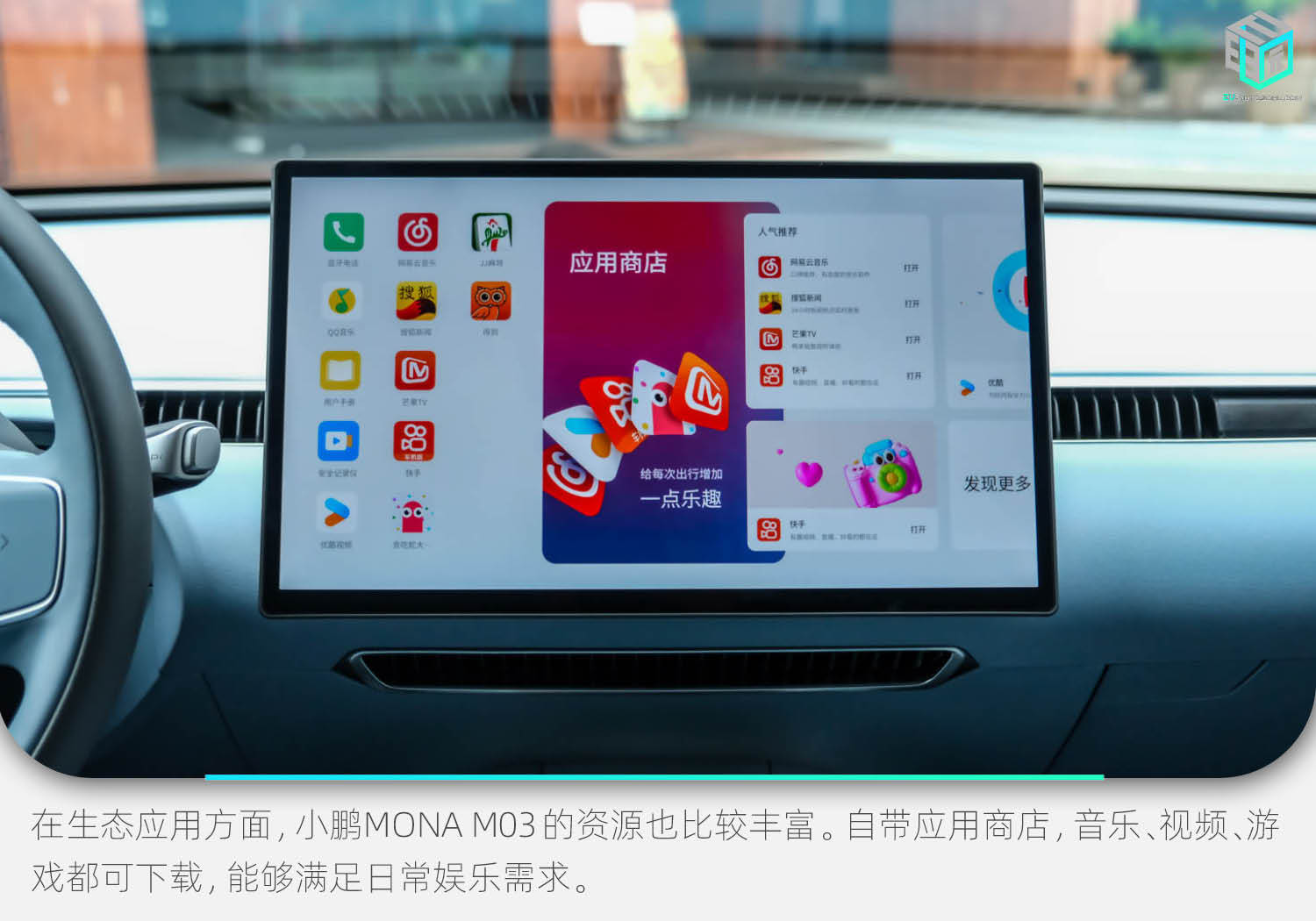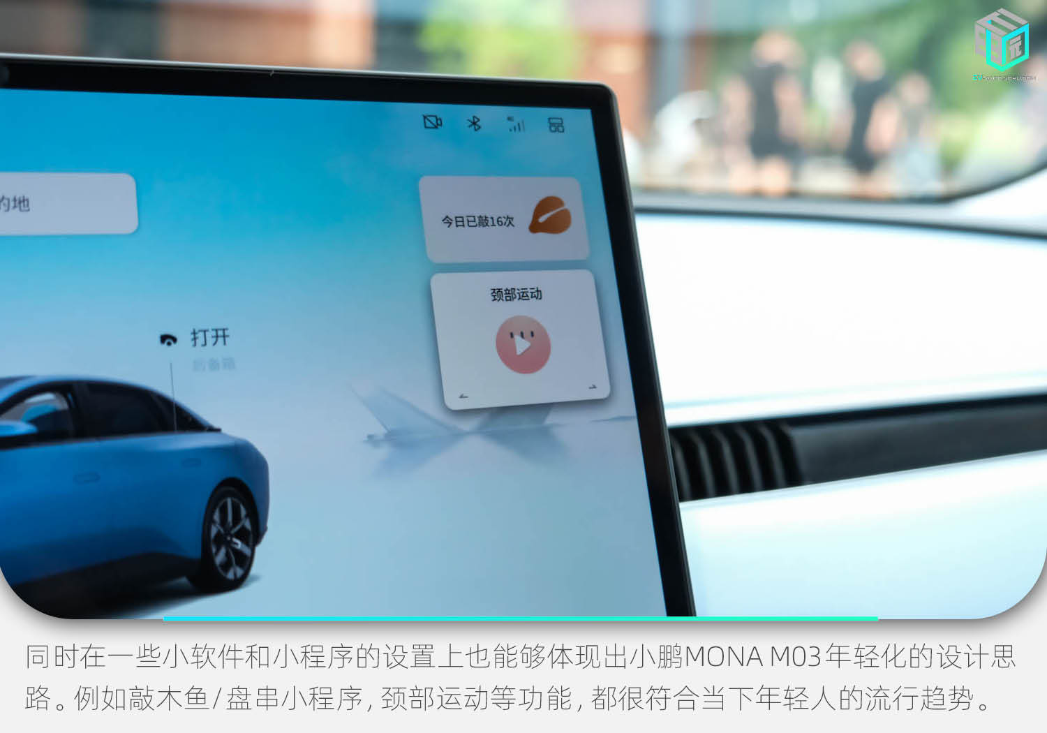 【 · 智能座舱 · 】小鹏MONA M03搭载的车机系统和小鹏其他车型所搭载的天玑系统不同,这套自研系统更加年轻化,且操作逻辑更加接近于手机和平板。