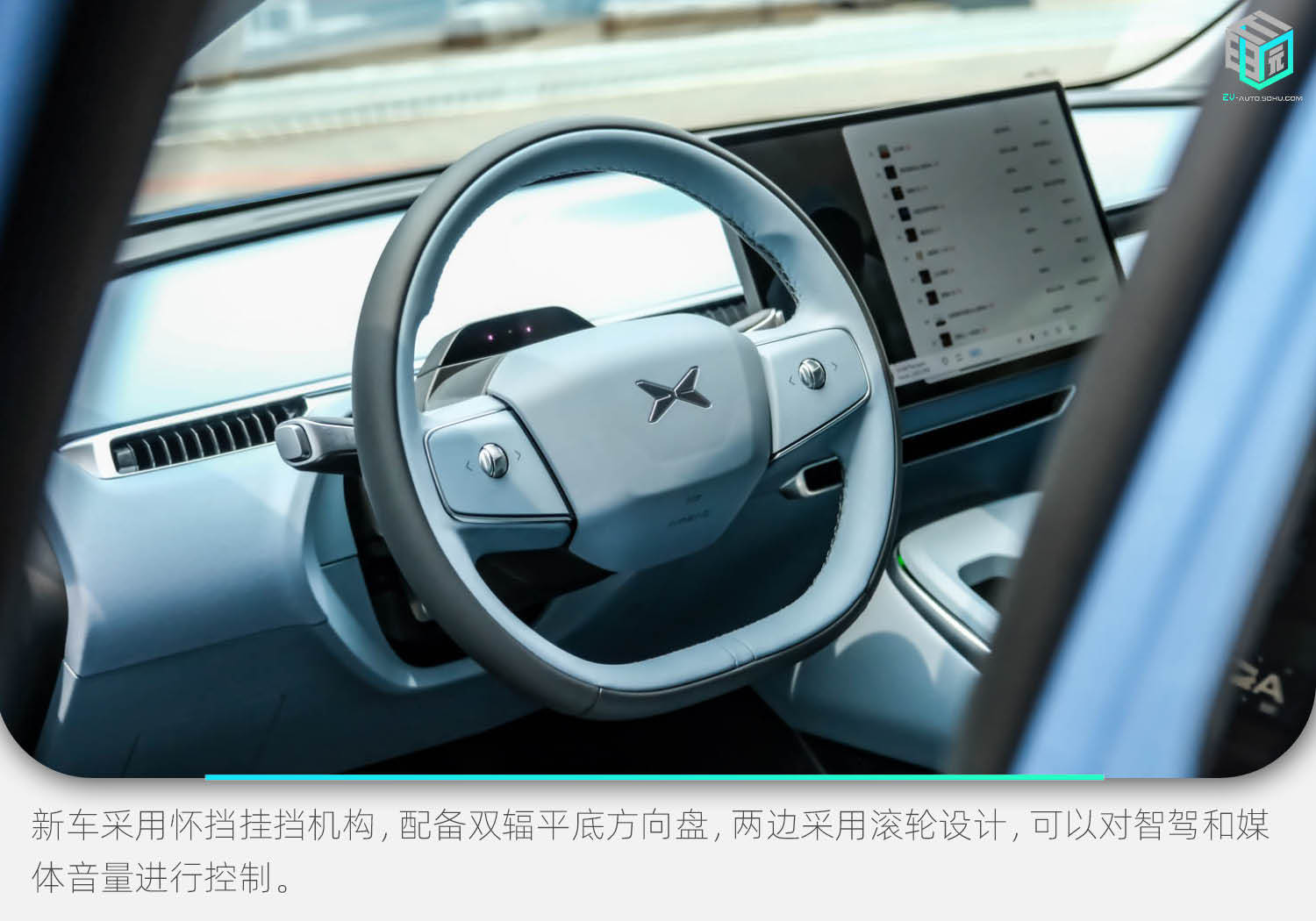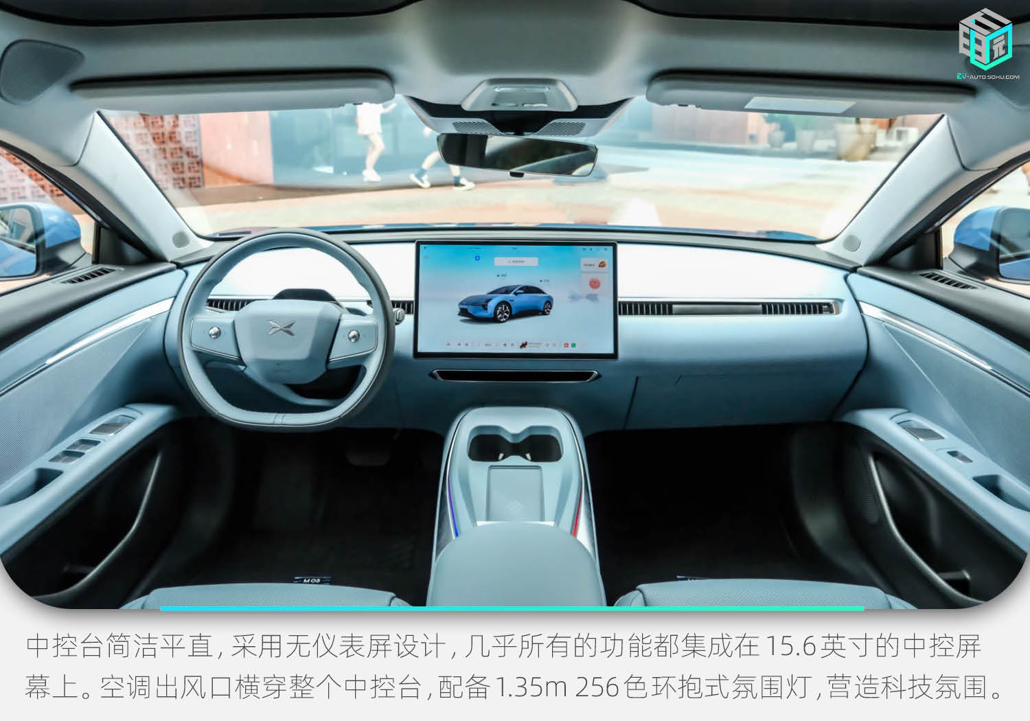 【 · 内饰设计 · 】先来看看小鹏MONA M03的内饰设计,总体来说,这次的中控设计还是非常贴合年轻人的喜好的,而且配色也比较清新,这次拍摄车辆颜色为星耀蓝,内饰配色为同色系的浅蓝色,颜色更偏向于近几年大火的“Baby Blue”色系,看起来年轻且富有活力。