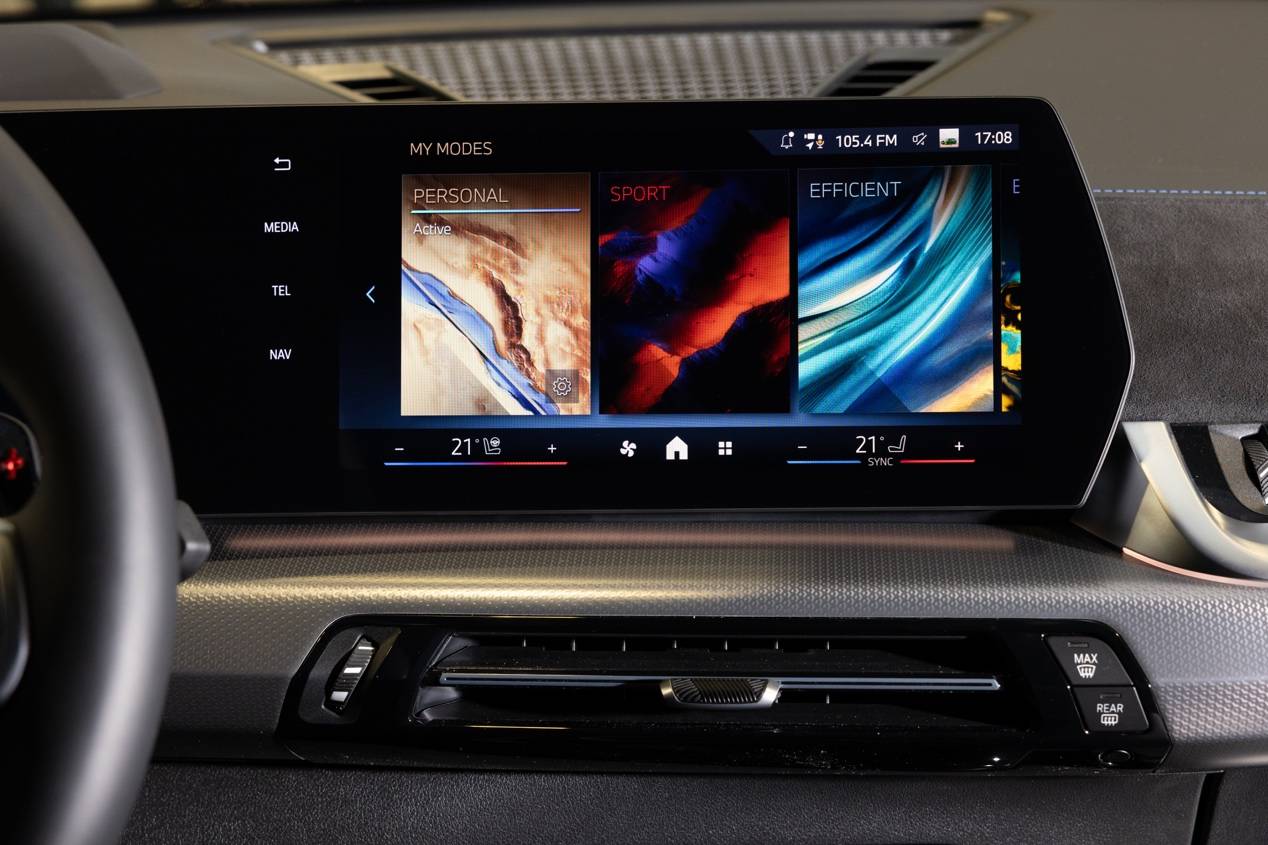 内饰方面,全新BMW X2从BMW iX的内饰设计理念中汲取灵感。水平装饰条从一体式悬浮曲面屏一直延伸至车门,整体感很强。还配有大尺寸的全景天窗。M运动曜夜套装车型内饰配备多种M设计元素,包括M运动方向盘、带背光M标识的一体式M运动座椅等。