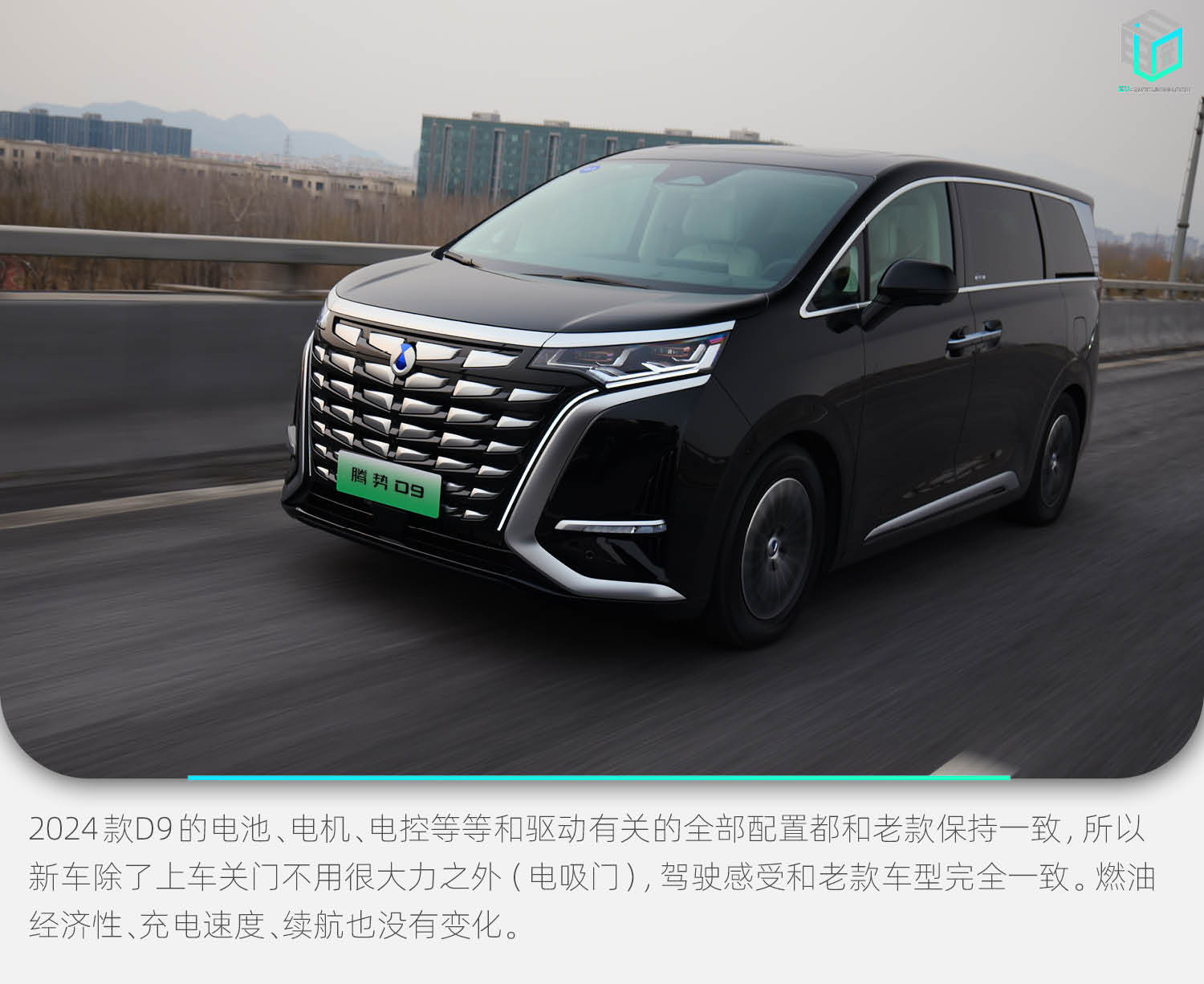 2022年10月份第一次试驾腾势D9,那篇内容的开头我提出了一个问题:采用DM-i混动的全新MPV(腾势D9)能否延续秦PLUS的光环,在销量榜上超过霸榜多年的GL8吗?现在,一年多已过,上述这个问题已经有了答案。2023年腾势D9成为了全年MPV的销量冠军,打破了GL8多年的统治,当初的问题得到了肯定的回答。现在2024款腾势D9已经到来,作为新的销量担当,新车有啥变化?这篇内容我们一探究竟。