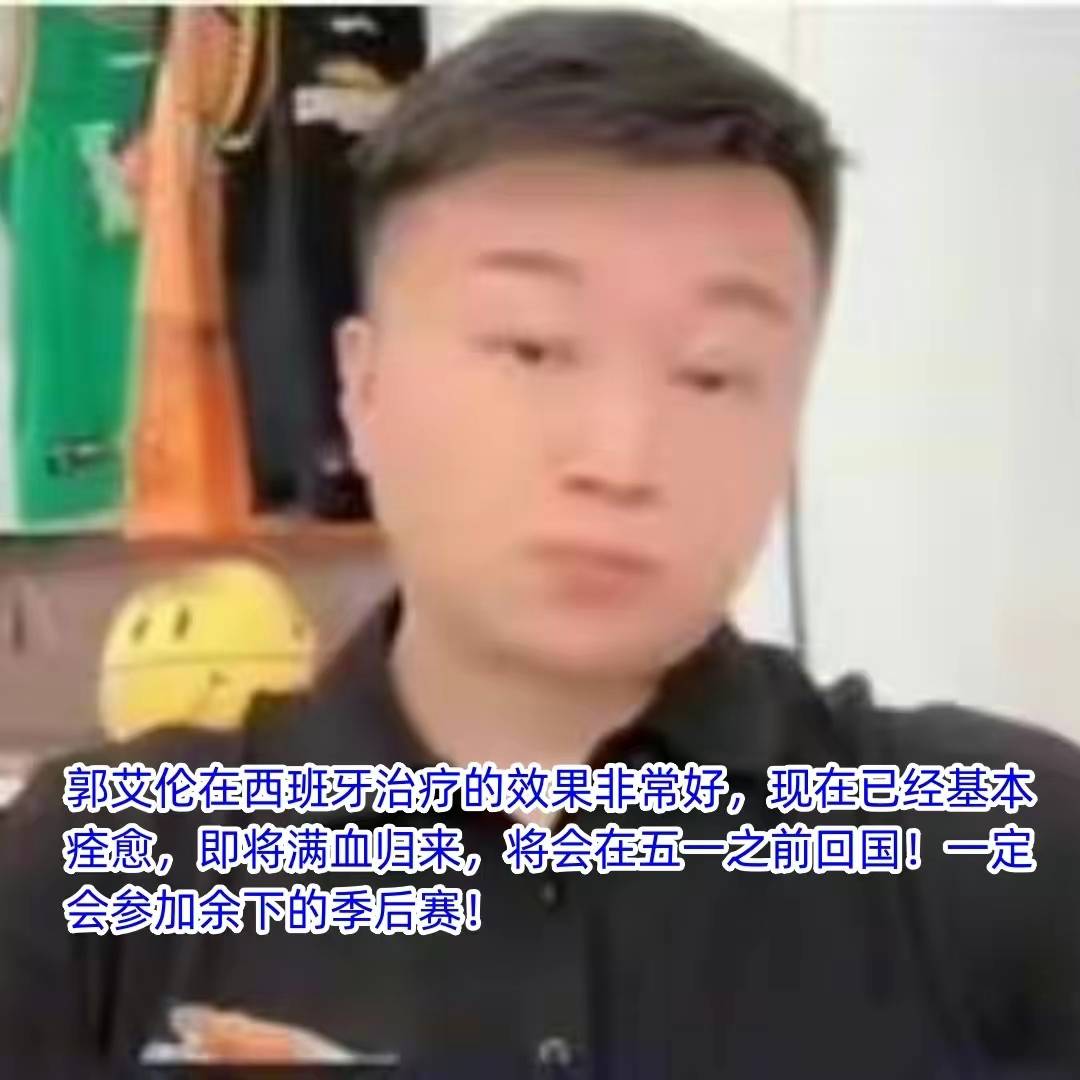 另外辽宁男篮这边郭艾伦还没有回归,郭艾伦目前正在西班牙治疗自己的伤病,何时回归同样是球迷所关心的。虽然郭艾伦没有归队,但是郭艾伦却时刻被关注着,他同样三天两头在社媒公布自己的动态,此前他捐款三万元救助小女儿的消息更是登上了热搜。而近日有知情媒体爆料了郭艾伦回归的日期,这位媒体人说道,“郭艾伦在西班牙治疗的效果非常好,现在伤势基本痊愈,郭艾伦也一直保持着体能训练,他将在五一之前回来,并且一定会参加余下的季后赛!