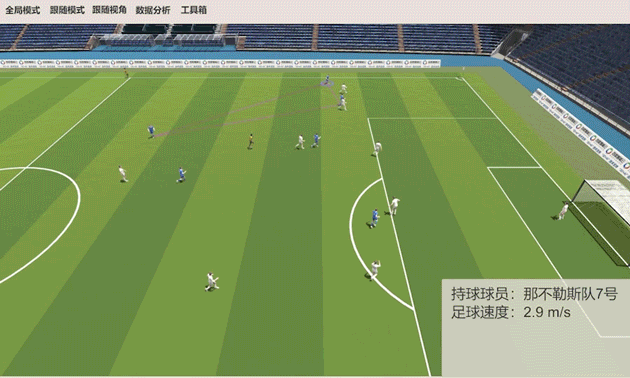 据悉,该平台引入了先进的骨骼级追踪捕捉技术和云、边、端一体化的“3D+AI”智能系统,可实现对场上每一个球员和足球移动数据实时分析,获取到以前无法精准捕捉的比赛数据,并通过视频云渲染技术和AI公有云进行可视化呈现。