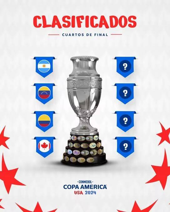 1/4淘汰赛阶段,B组第1委内瑞拉将遭遇A组第2加拿大,而B组第2的厄瓜多尔则将与A组头名、卫冕冠军阿根廷碰到一起。