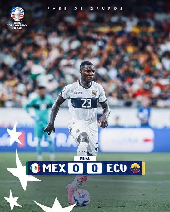 在点球判罚被驳回后,墨西哥最终无奈0-0战平厄瓜多尔,至此,4分的墨西哥以净胜球劣势排名小组第3,目送厄瓜多尔晋级。
