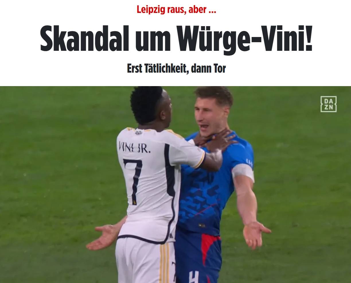 德国媒体《图片报》则撰文炮轰,“莱比锡出局,丑闻般的锁喉!先暴力后进球!”