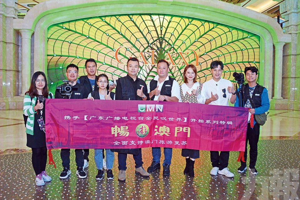 為助力促進澳門疫情後的旅遊經濟復蘇,中華傳媒聯合體製作的《暢遊澳門》特輯,介紹澳門現時防疫工作及衛生安全等環節,前(20)日假澳門銀河綜合度假城正式開拍,中華傳媒聯合體總監莫環、廣東珠江頻道《全民歎世界》總監阮浩等出席主禮。