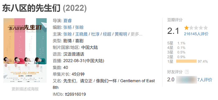 豆瓣最低分2分,《东八区的先生们》只拿到2.1分