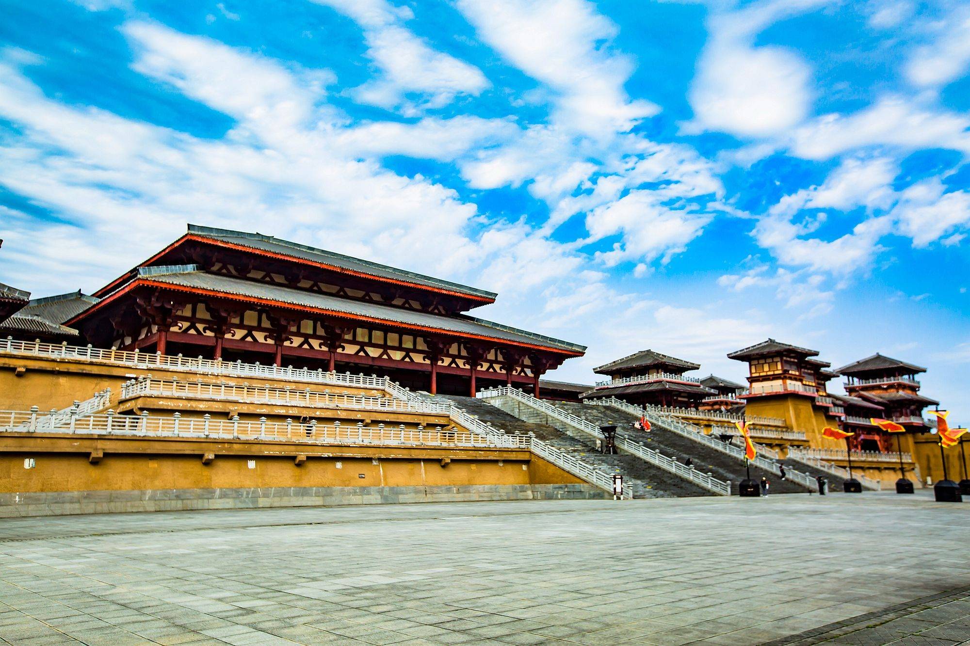 唐代诗人李商隐在《咸阳》一诗中写道“咸阳宫阙郁嵯峨,六国楼台艳绮罗”,其实不止秦朝,汉朝时皇家也钟情于大修宫殿,且主打一个大气磅礴,景区内完美还原了未央宫、长乐宫等皇家宫殿,庄严肃穆,让人不由产生敬畏感。