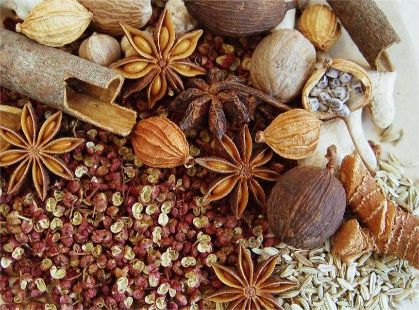 肉蔻,其外形呈卵圆形或椭圆形,表面为灰棕色,有网状沟纹,质坚硬,难破碎,果肉的纹理类似于大理石。肉蔻在卤肉中的作用主要是增添肉质的醇厚口感和香气,它独特的香气能够深入肉质,使卤肉在炖煮的过程中,逐渐吸收其香气,从而使卤肉的味道更加浓郁。